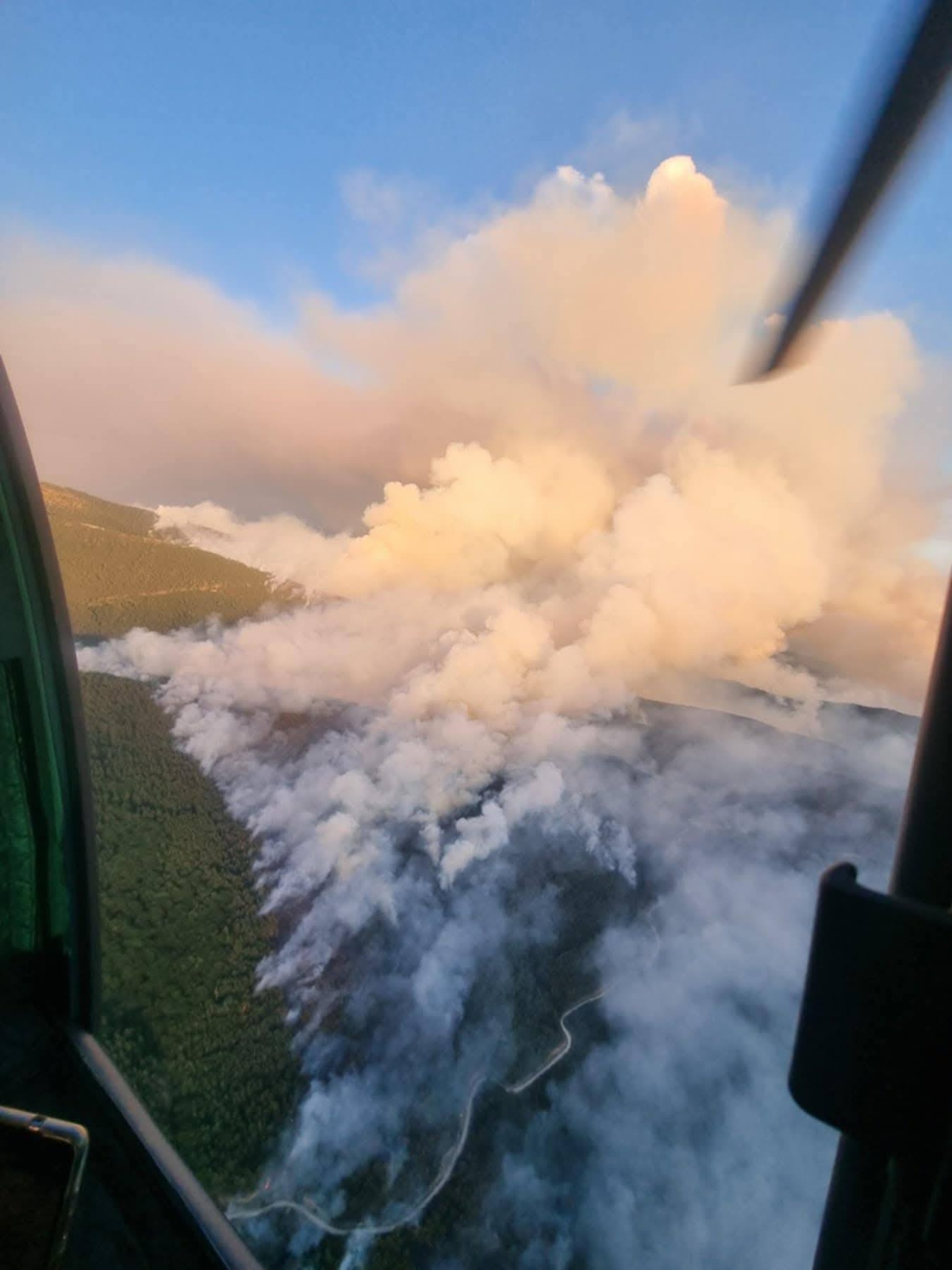 Вътрешността на засегнатите райони се обработва за тлеещи огнища, а два хеликоптера “Кугър“ на Военновъздушните сили гасят труднодостъпно огнище с площ около 7–8 декара. Те действат на места, където наземните екипи не могат да достигнат.