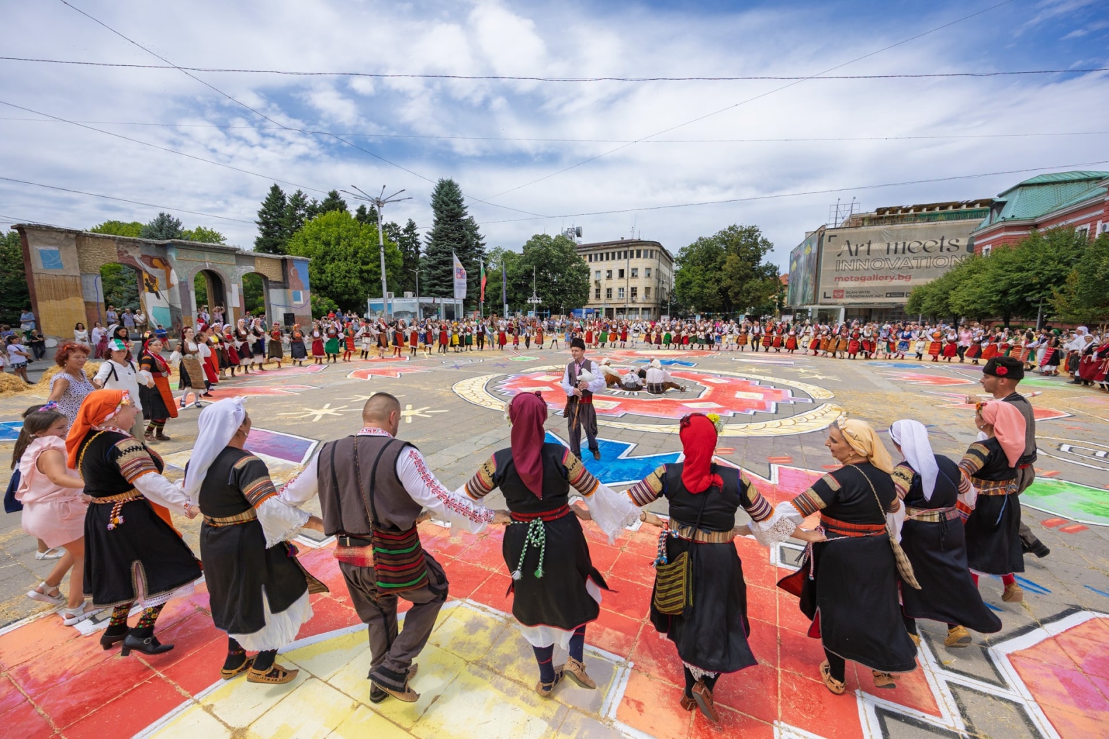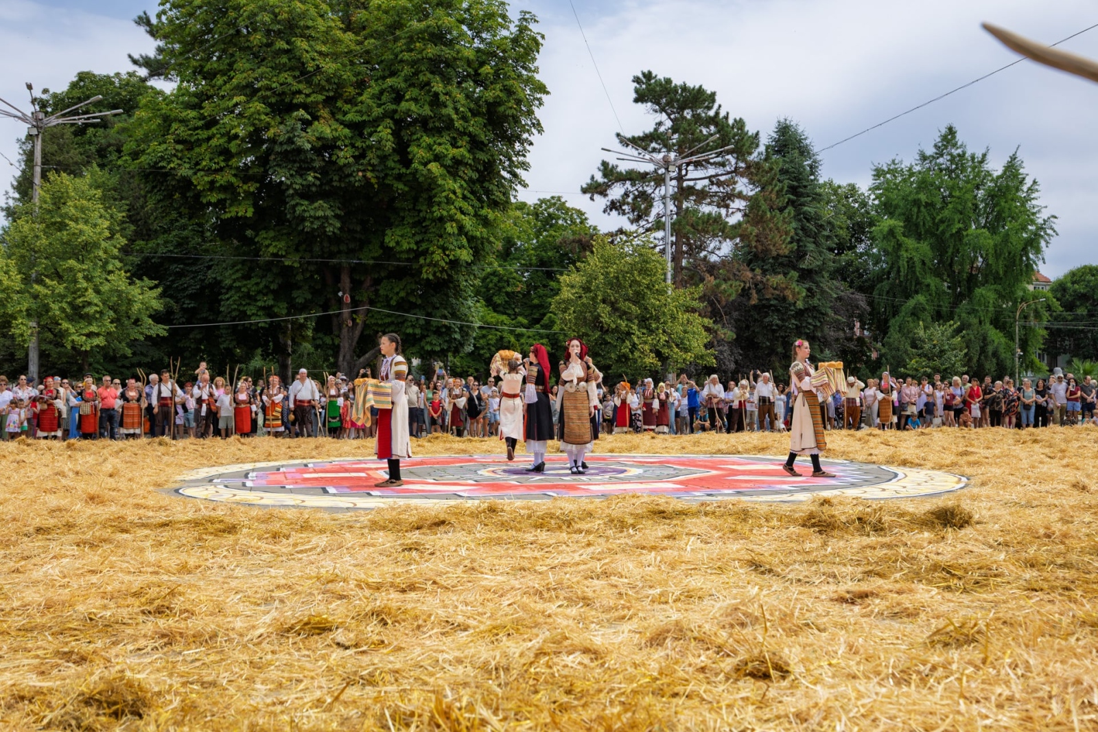 Под краката на танцуващите жетвари оживя най- голямата шевица у нас – 1 200 кв. м символи, избродирани от децата на Кюстендил. Топъл хляб, обща молитва и "Жътвата“ на Майстора – като картина, но жива, дишаща и благословена. Истински празник, който почита женското начало и женска шевица, която отправя послание за добруване, за бъдещето на нашия град.