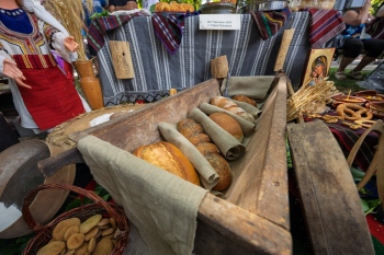 В центъра на града бе подредено вдъхновяващо изложение на обредни хлябове, пазители на традицията, изработени от читалищата в общината.