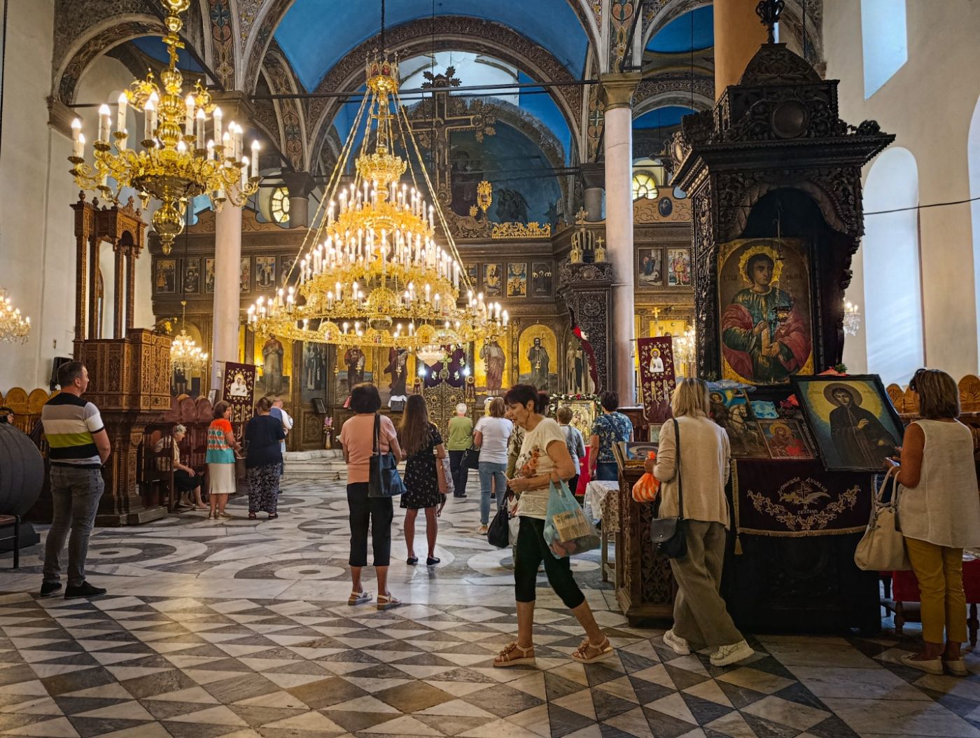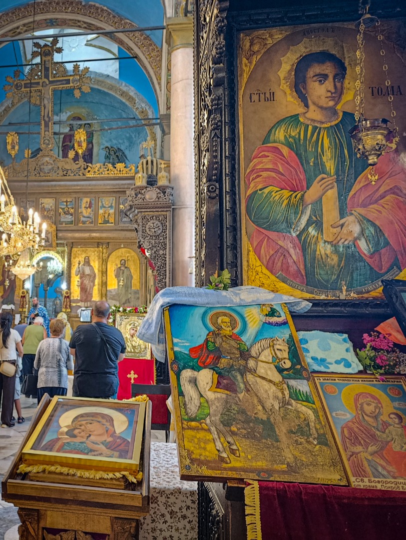 Десетки миряни запалиха свещ, помолиха се за здраве и даруваха иконите на Рилския Чудотворец. Службата в катедралния храм “Св. Георги” отслужи отец Петър Очков.