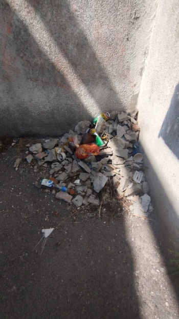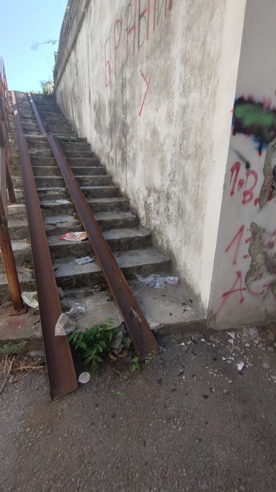 Също така стълбите продължават да се ронят, а мазилката да пада. Пространството редовно приютява и мини сметища. Въпросът е елементарен – кой носи отговорност това място да върне нормалния си вид?