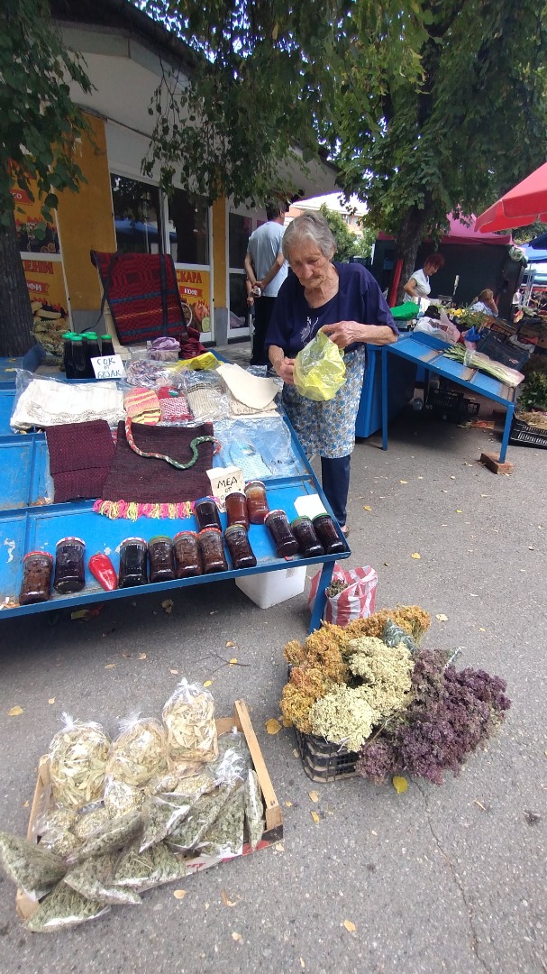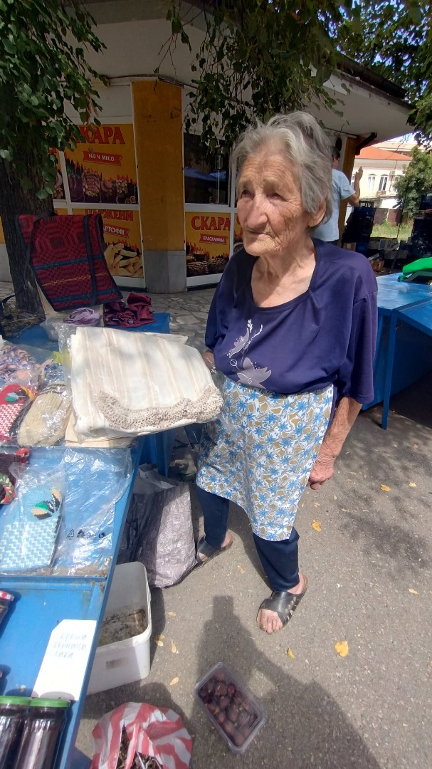 89-годишната Василка Стоименова от село Граница е един от най-колоритните и винаги усмихнати търговци на пазара в Кюстендил. Бабата върти скромна сергийка, но пълна със съкровища - плетени чорапи, домашни сладка, дъхави билки от планината, мед от борови връхчета, сок от бъзак... Срещу 5 лева може да се сдобиете с кисе за баня от домашно сукно, толкова красиво, че човек трудно би посмял да го използва за къпане.