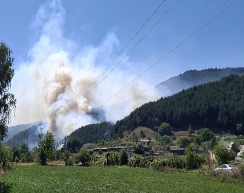 Голям пожар обхвана гората в района на минералните бани в Якоруда. Огънят се разраства бързо заради високите температури и силния вятър, а гъст дим обхваща околността.