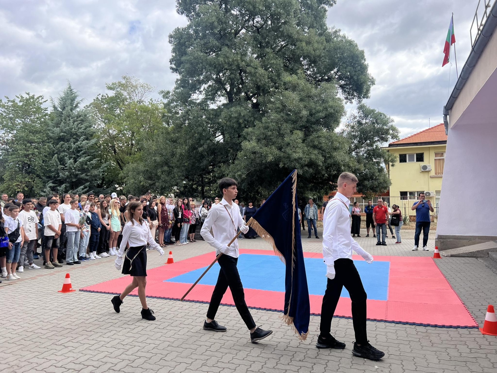 Церемонията започна с изпълнение на химна на Спортно училище “Васил Левски“ и издигане на националния флаг на България, който бе поверен на заслужено признатите ученички и спортистки – Вероника и Десислава Стоилови. Те символизираха не само националната гордост, но и духа на училището.