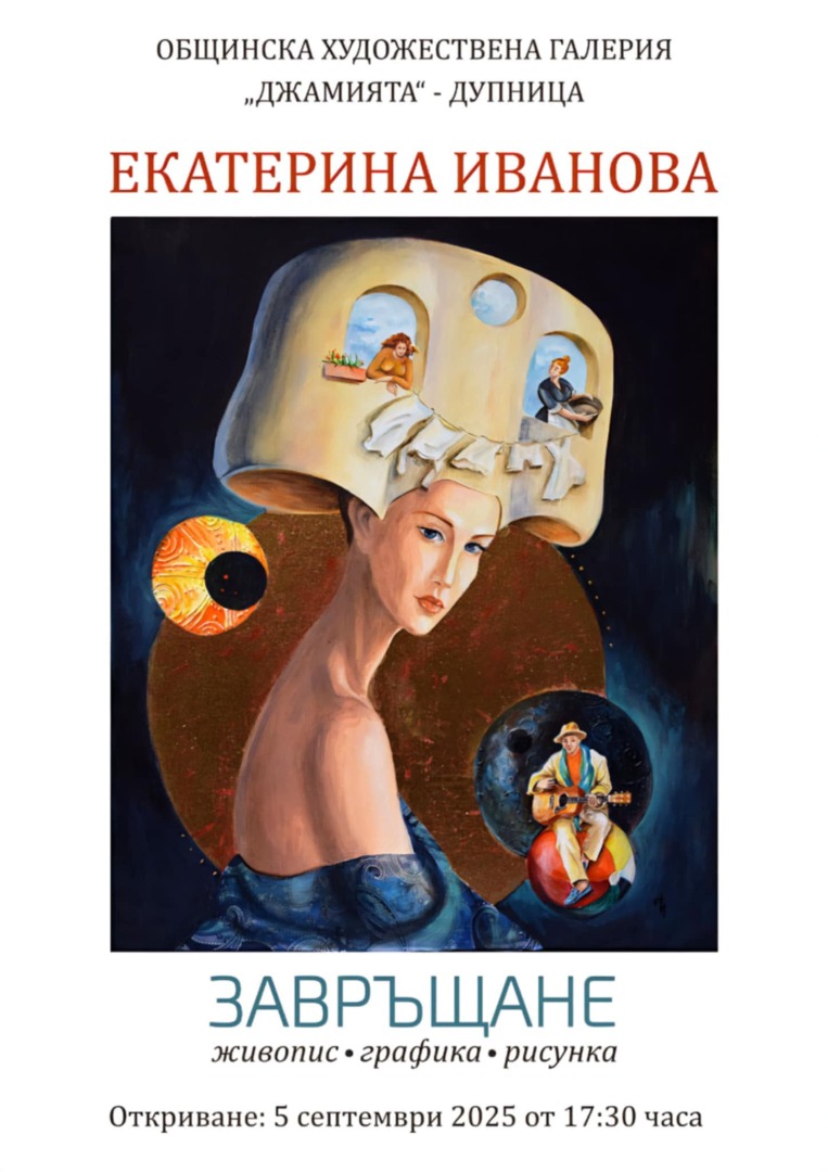 Общинска художествена галерия "Джамията" открива изложба на Екатерина Иванова. 30 години след завършване на образованието си в института в Дупница, авторката отново е в града със свои творби, обединени под наименованието “Завръщане”.