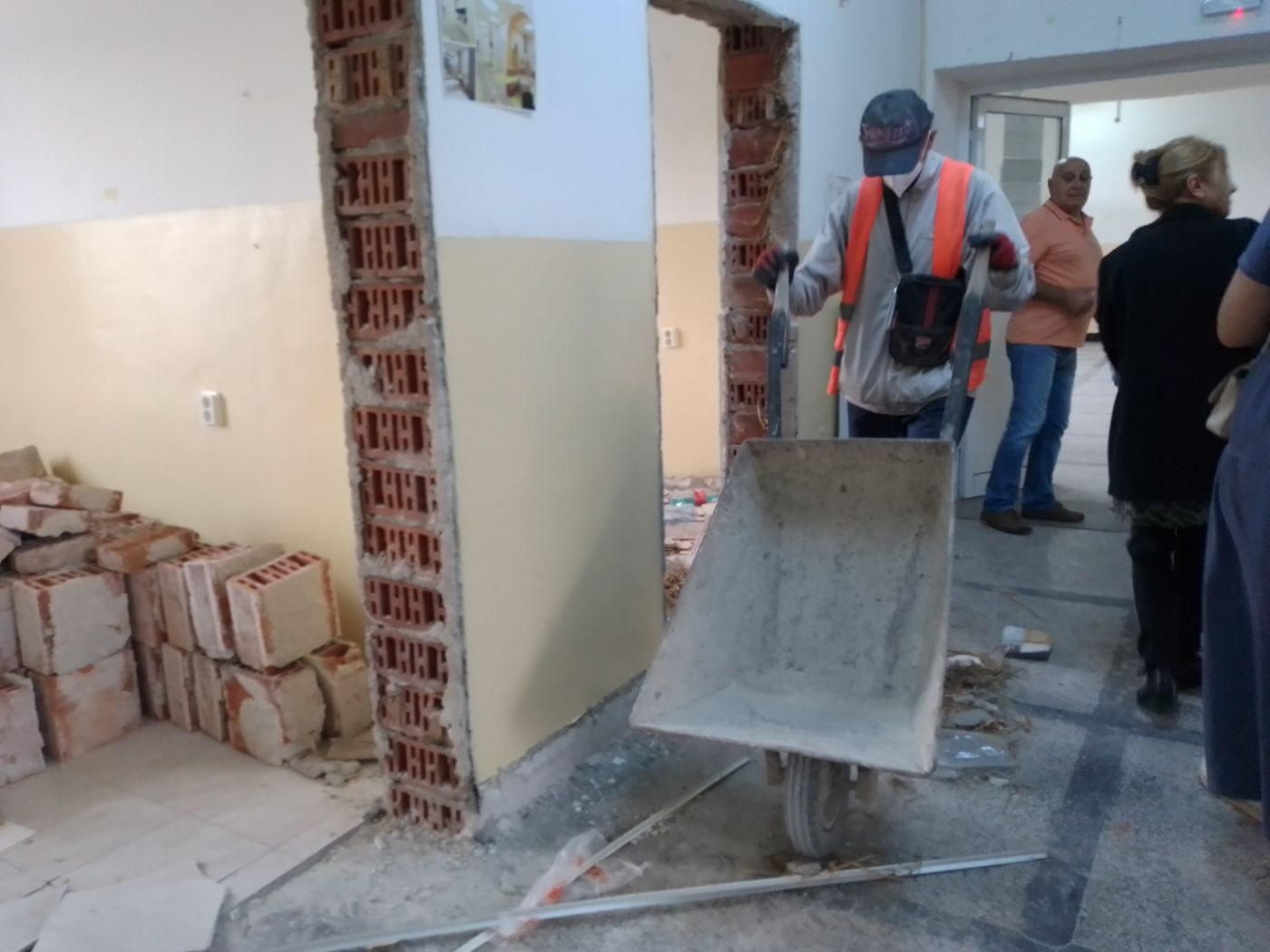 Тече дългоочакваният ремонт на детското отделение в общинската болница в Дупница. В момента работници от отдел “Строителство“ на Общината, на които съдейства и общинското предприятието по чистота, подготвят помещенията за същинските дейности – изкъртват се старите мивки, плочките по подовете и стените, махат се врати, извозват се отпадъците. Така Общината изпълнява поетия пред Фондация “За доброто“ ангажимент да помогне с труд. За случващото се разказаха зам. – кметът Бойко Христов, управителят на МБАЛ “Св. Иван Рилски“ д-р Стефан Николов, бившият президент на Ротари клуб – Дупница, Методи Димитров и Борис Колчаков - гл. инженер на Община Дупница и ръководител на бригадата, подготвяща обекта за втория етап на реновирането.