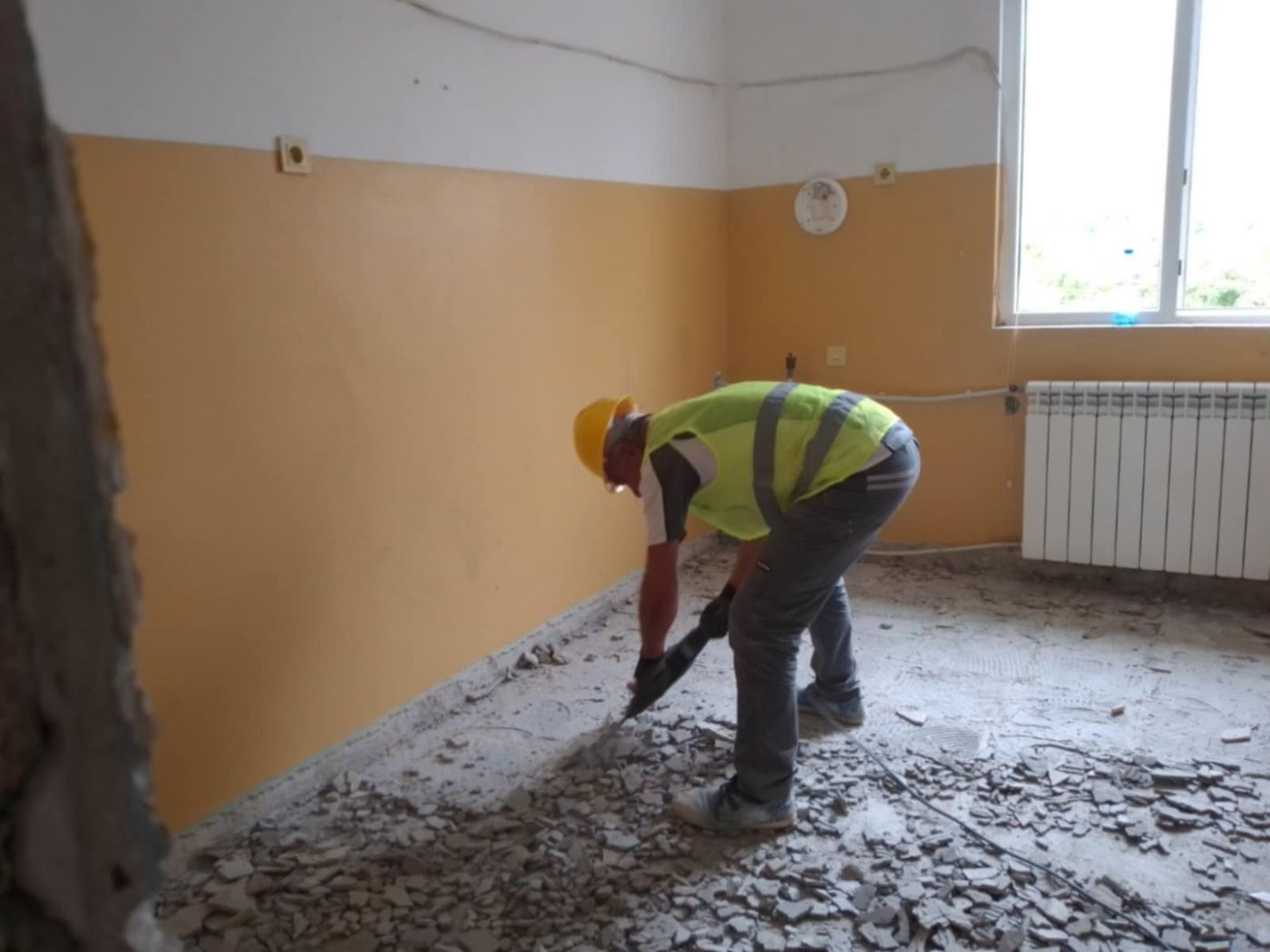 “Извършваме първата – най-тежката стъпка от ремонта – разбиването на стени, подови настилки, за да се даде старт на втория етап на ремонта, който ще извърши фирмата – изпълнител, избрана с обществена поръчка. Тя е софийска, с клон в Пловдив. Те ще извършат строго регламентирани в обществената поръчка дейности. След това ще започне третият етап, изпълнението на който е от Фондация “За доброто“. С него ремонтът ще приключи. Срокът за изпълнението е 60 календарни дни. Движим се по план. Действа се изключително бързо и ефективно.