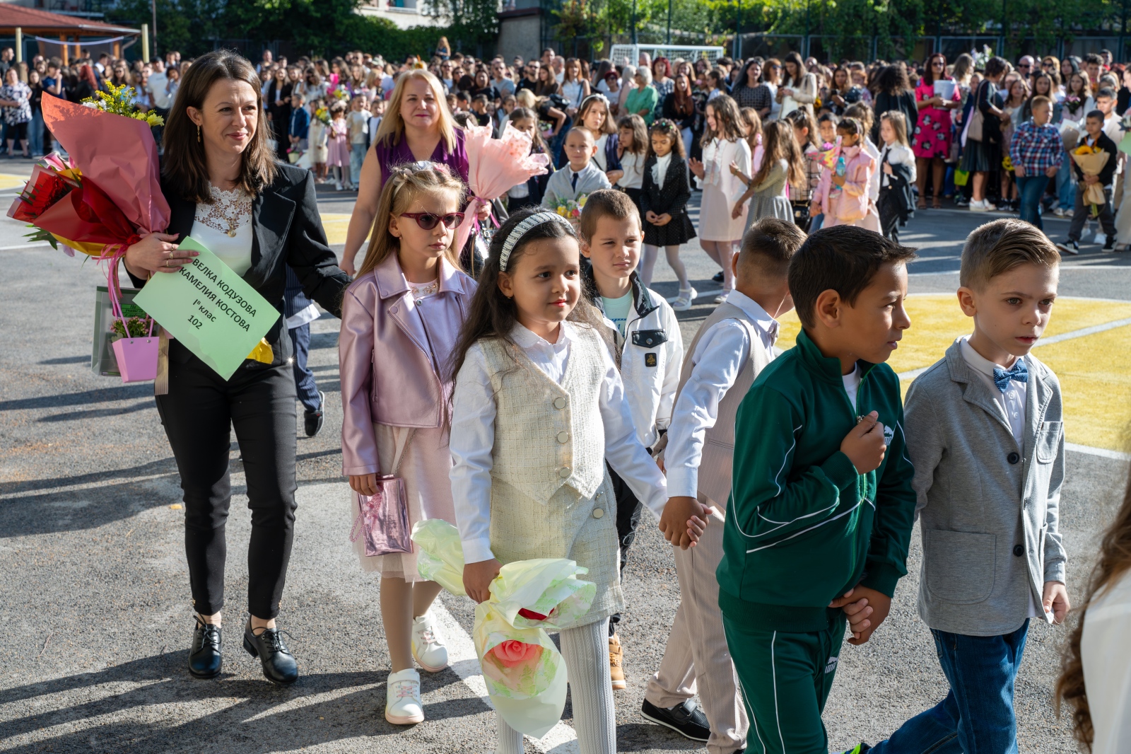 85 първолаци с трепет в сърцата и красиви букети в ръце бяха посрещнати от класните им ръководители Валентина Богатинова, Елисавета Данчева, Велка Кодузова и Даниела Николова.