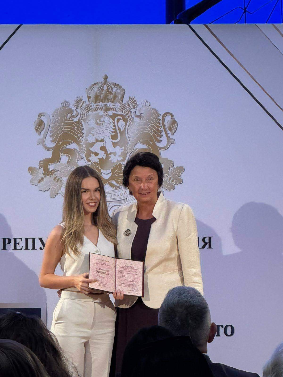 От Езикова гимназия в Перник казаха, че са изключително горди с постижението на тяхната възпитаничка. С Ивелина, Димитрина и Анна-Мария, общият брой носители на Национална диплома тази година достигна 145 – рекорден брой в историята на отличието. Това са зрелостници от 22 области на страната, които не само са постигнали максимални резултати в училище, но и са се отличили с активно участие и успехи в различни състезания, олимпиади и проекти. “Да си отличник не е просто етикет, а състезание със себе си – желание да се надскочиш, да се докажеш, да продължиш напред“, каза в речта си премиерът Росен Желязков. Той поздрави младежите за решението им да останат в България и да продължат образованието си тук: “С вашия успех ще дадете репутация на университетите ни, а те ще ви върнат познание, с което да променяте бъдещето.“
