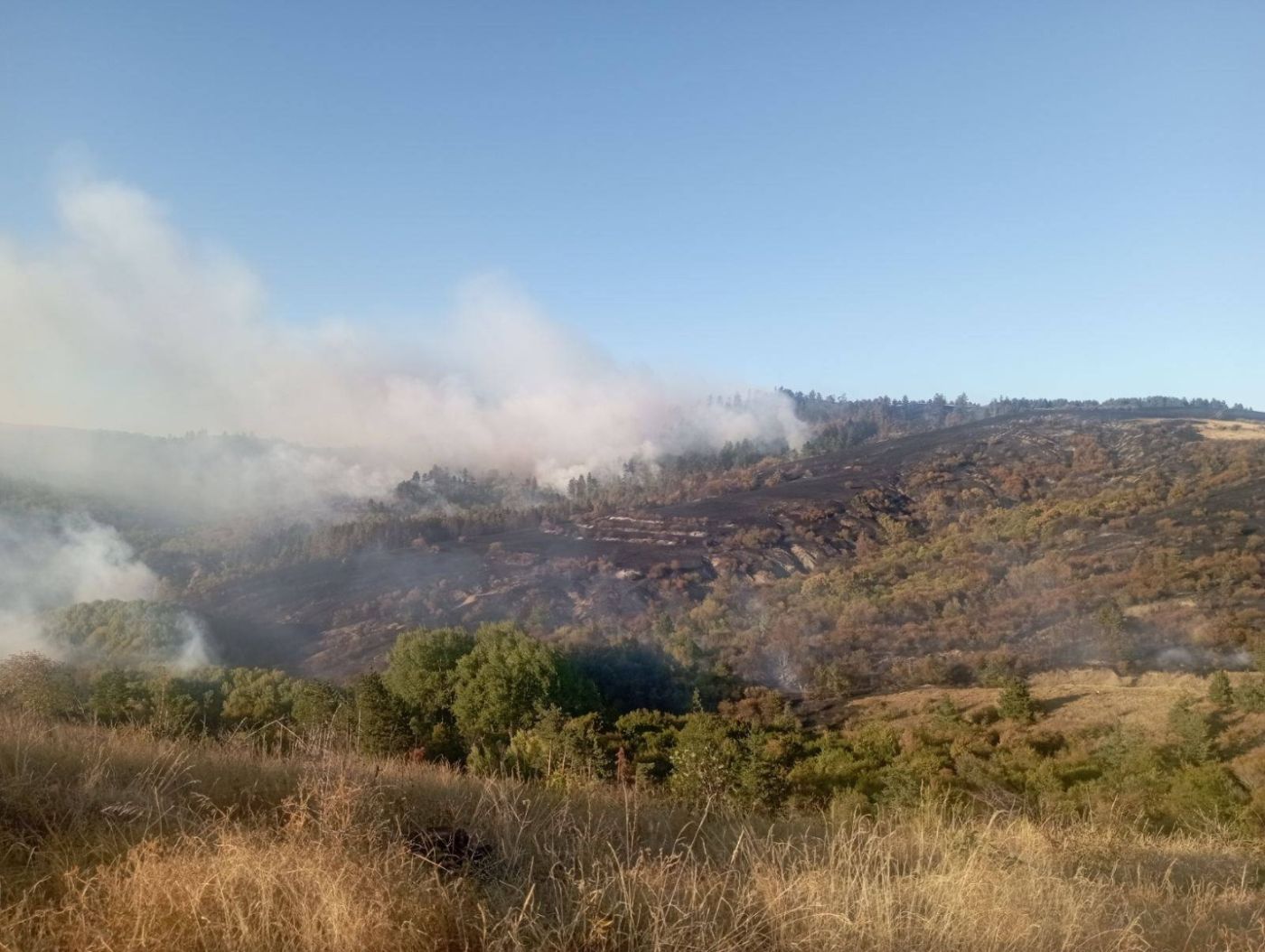 Пожарът избухна пожар в местността Мечи Камък във Вискяр планина над брезнишкото село Горни Романци. Той се разрастна бързо заради откритостта на терена.