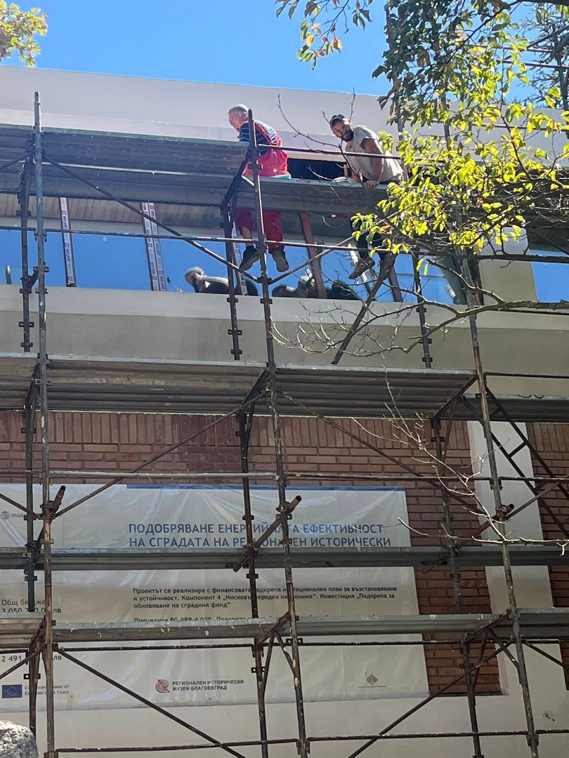 Ремонтът на Регионалния исторически музей в Благоевград напредва с пълна сила и стъпка по стъпка преобразява една от най-емблематичните културни сгради в града. В момента се работи както по фасадата, така и по вътрешните пространства, а сградата постепенно се подготвя да заживее нов живот – модерен, устойчив и достъпен.
