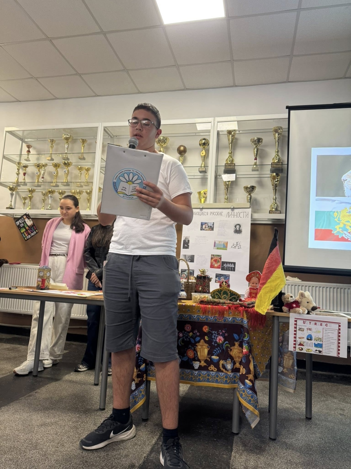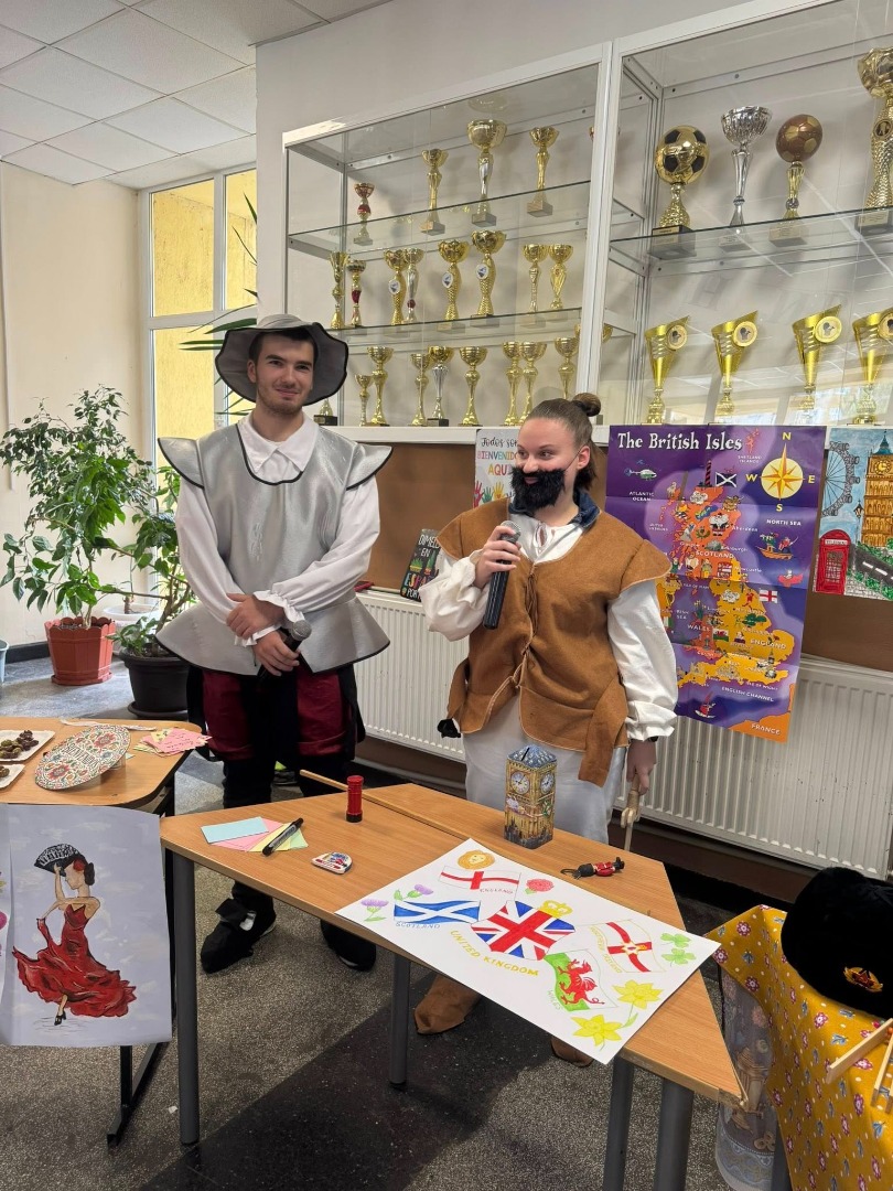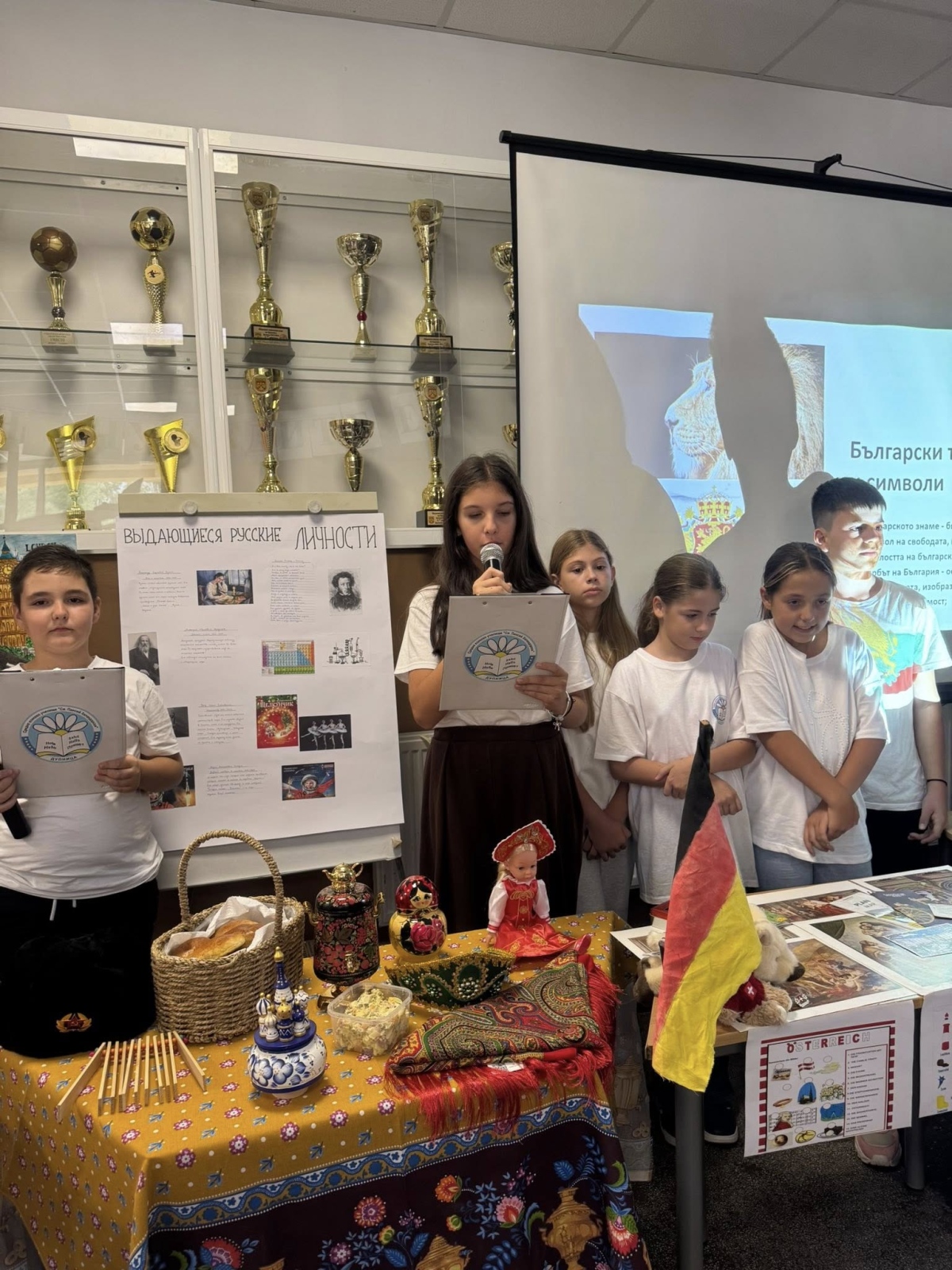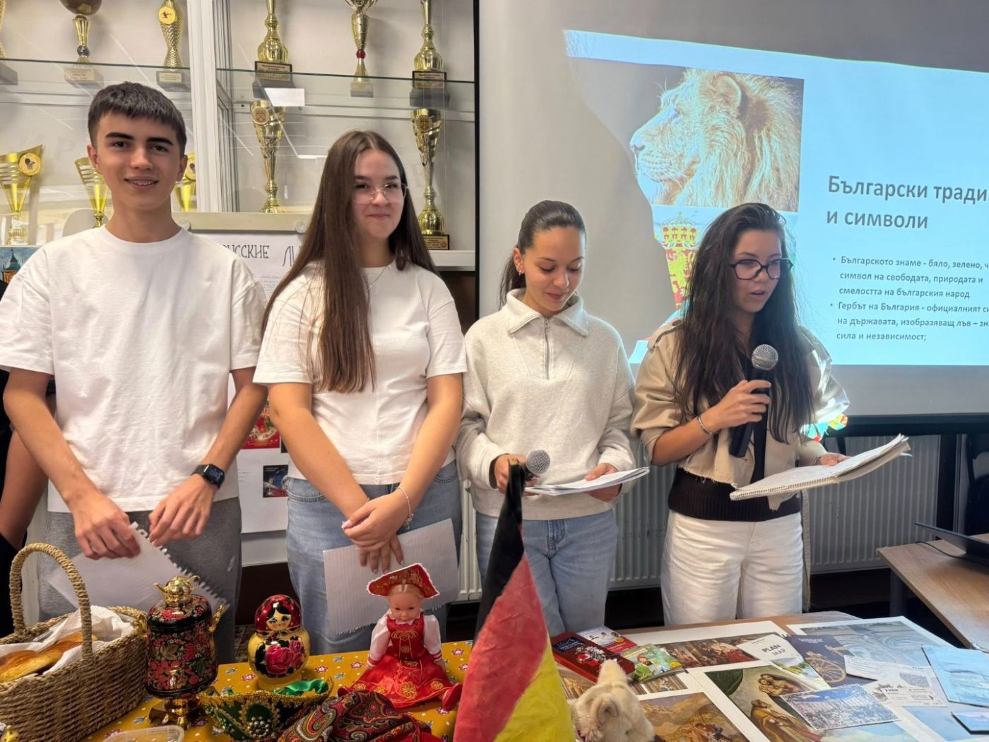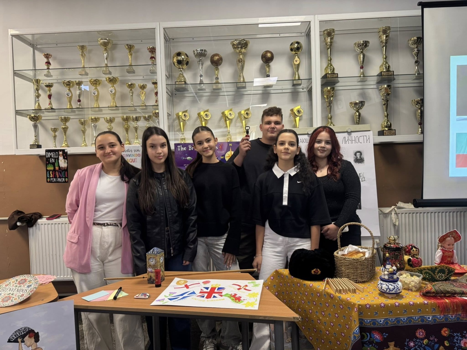 Представени бяха типични сувенири и кулинарни изкушения от Англия, Испания, Германия, Русия, както и любопитни факти за съответните държави на изучаваните в училището езици – английски, испански, немски и руски. Учениците се превъплътиха в образите на Дон Кихот и Санчо Панса, а до тях застана истинска фламенко танцьорка.