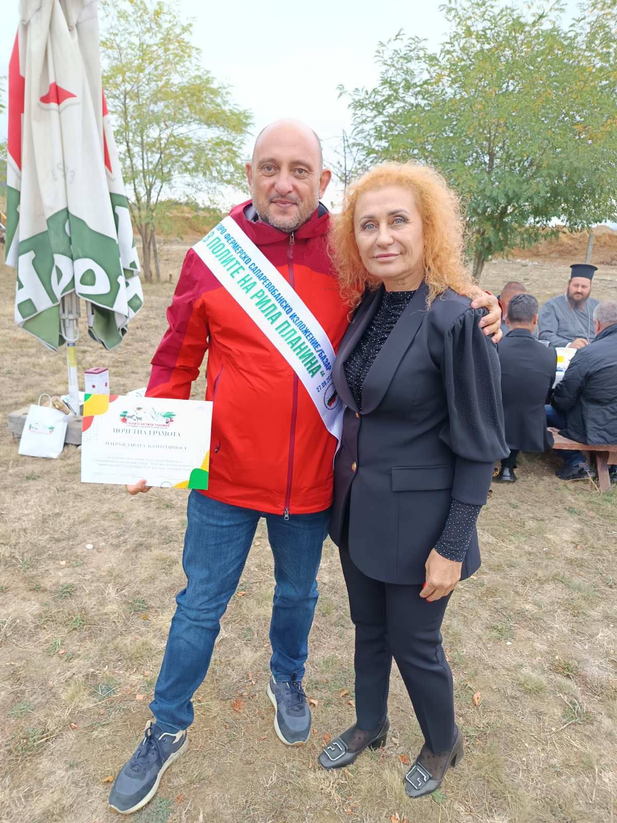 Кметът на Община Сапарева баня Калин Гелев поздрави присъстващите с пожелание за здраве, вдъхновение и упоритост в мисията им, посветена на земеделието и животновъдството, като ги насърчи да предадат своя опит на младите поколения. Заедно с него, сред отличените с почетни грамоти, значки и ленти с мотото на фестивала бяха председателят на Общинския съвет Костадин Николов, зам.-председателят Любомир Георгиев, народният представител Иван Ибришимов, както и духовните лица – протоерей Димитър и отец Васил.