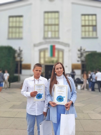 Освен Виктор Петров, награда получи и неговата майка - преподавателката в СУ “Христо Ботев” - Ирена Петрова