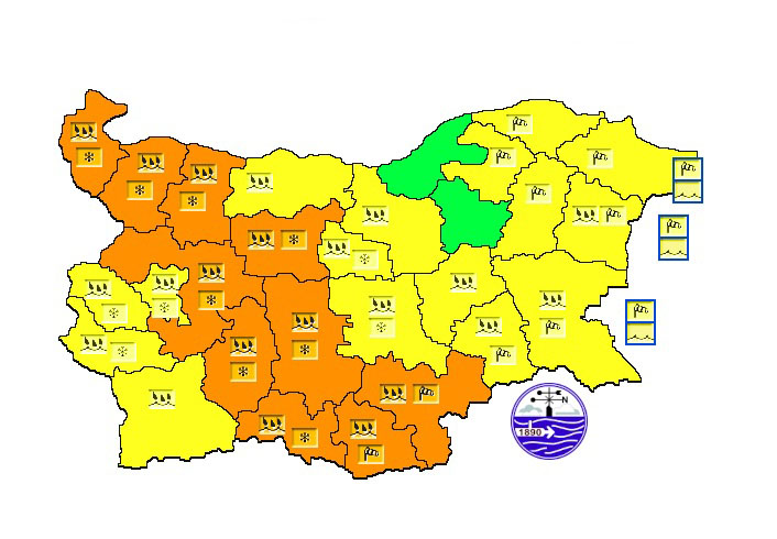 Синоптиците обявиха жълт и оранжев код за опасно време в почти цялата страна в четвъртък, 2 октомври. Сериозно внимание се изисква в Югозападна България – областите Кюстендил, Перник и Благоевград попадат под предупреждение за силни валежи, които през нощта срещу петък ще преминават в мокър сняг.