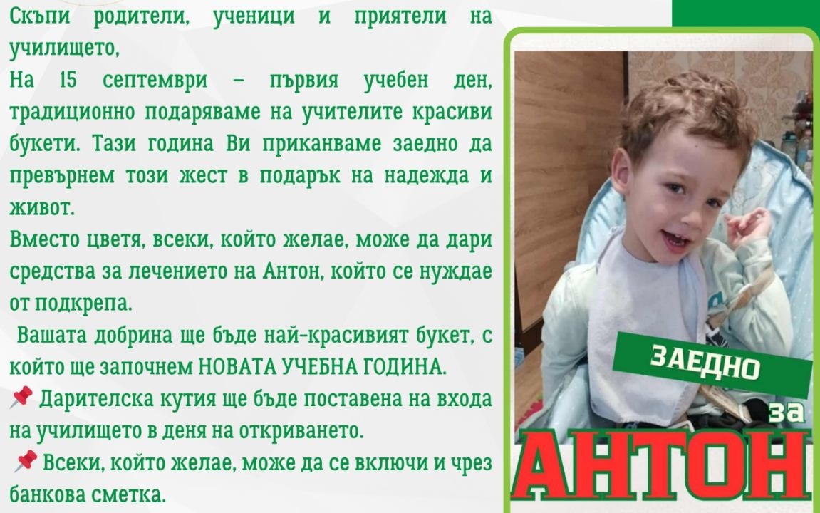 Само преди дни, деца от Основно училище "Св. св. Кирил и Методий" в Самоков организираха кампания в подкрепа на 3-годишния Антон Теменджийски, който страда от изключително рядко генетично заболяване – мутация на гена GRIN2B.