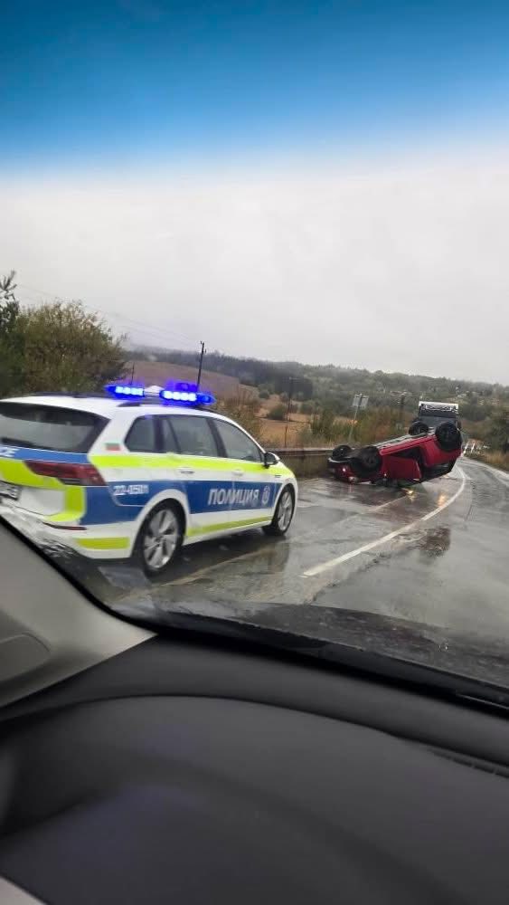 Автомобил се е обърнал по таван на отбивката за Вакарел към АМ "Тракия" в посока Пловдив. Това съобщиха пътуващи в сряда следобед. Шофьорите сигнализираха, че задръстването става все по-сериозно.