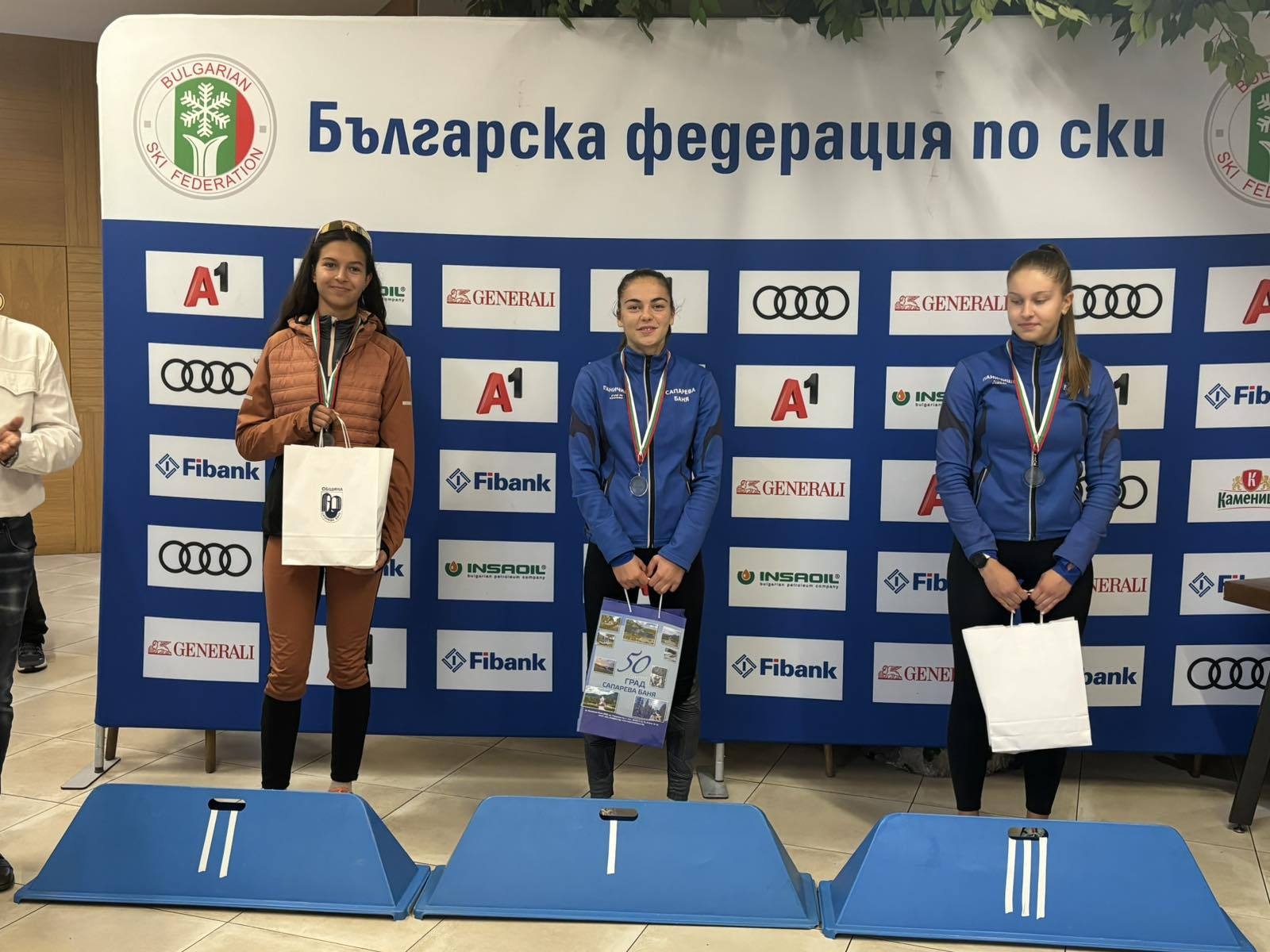 Държавното първенство по ски бягане-Девойки старша възраст-Масов старт ,свободен стил,получиха наградите си от г-н Костадин Николов-Председател на Общински съвет -Сапарева баня.