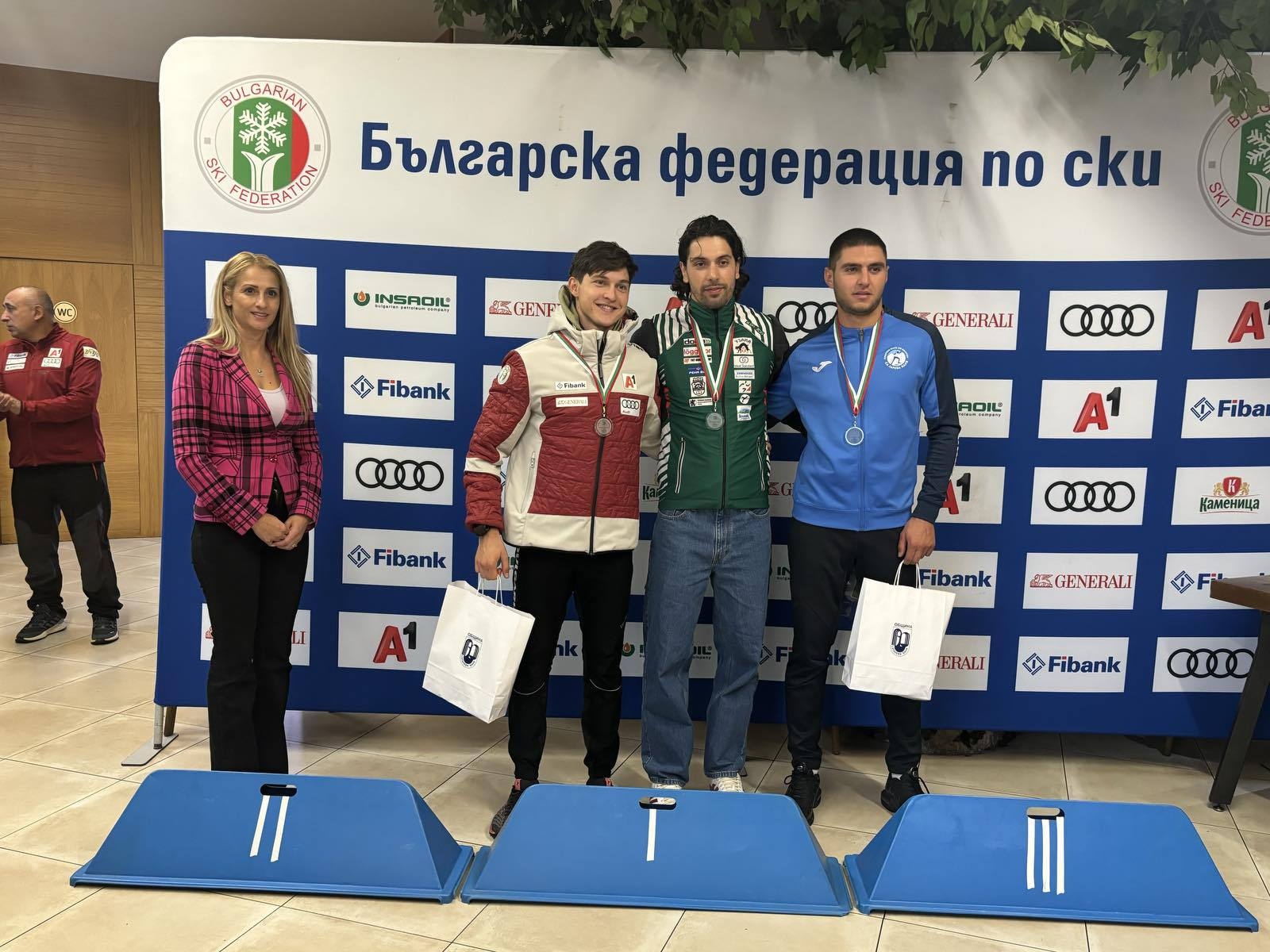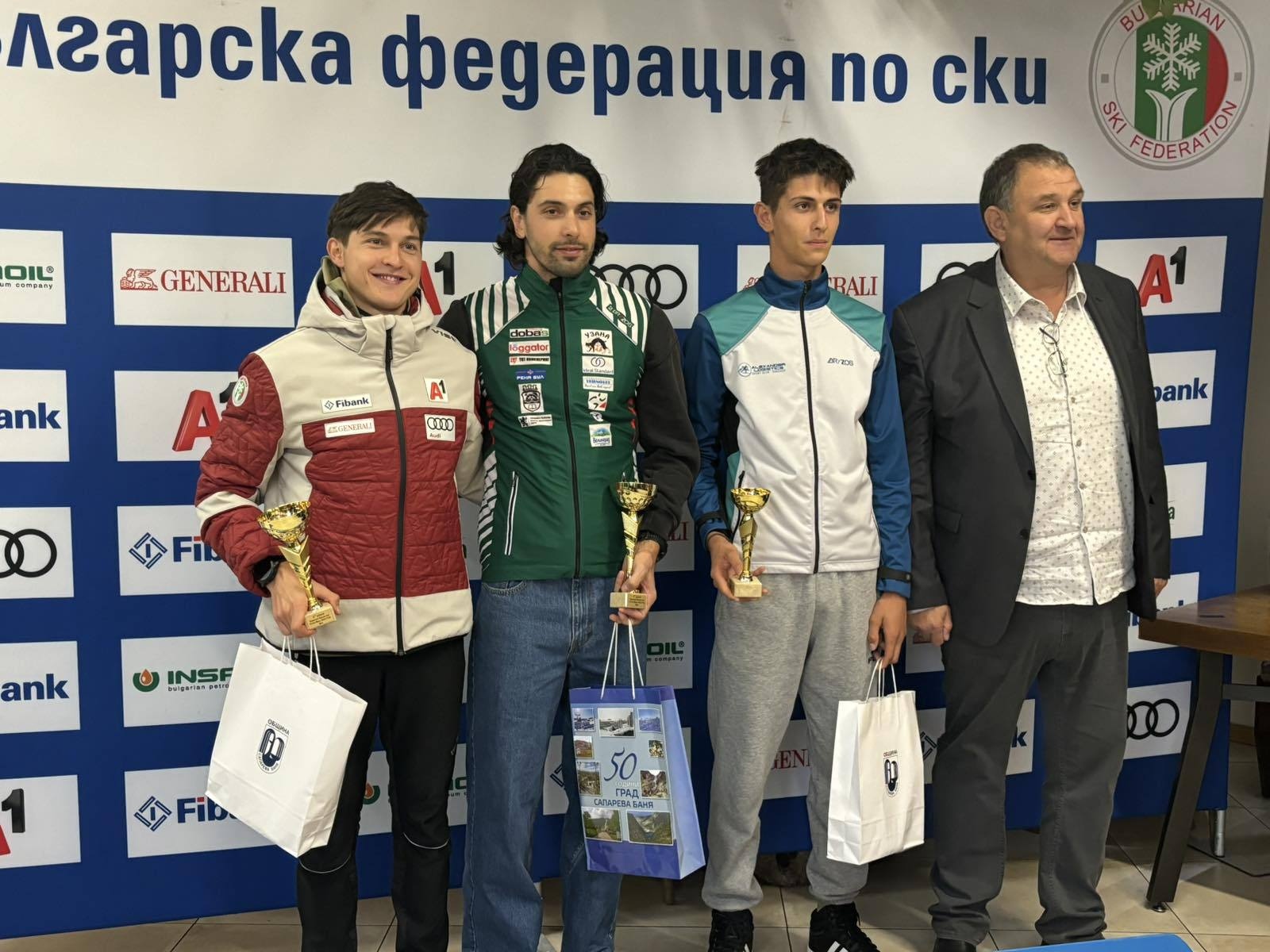 Победителите от Държавното първенство по ски бягане-Мъже-Масов старт ,свободен стил, бяха наградени от г-жа Михаела Динева-Заместник Кмет на община Сапарева баня.