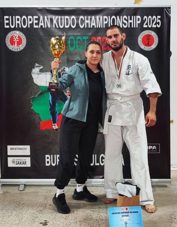 Рилчанинът Атанас Атанасов спечели сребро на Европейското първенство по Кудо, провело се в Бургас преди дни. “След 2 победи и загуба на финал от представител на Грузия се класирах на второ място в тежка категория.Искам да благодаря на президента на Българската федерация по КудоСенсей - Динко Бабамов за възможността, която ми даде. На Михаил Бабамов- за наставленията и набавянето на екипировка.И най-вече на половинката ми, която ме доведе до финала и стоеше на треньорския стол,Иоана Маринкова.Бойци сме, не защото винаги печелим, а защото винаги се бием!“, споделя вицешампионът, завоювал голям успех на най-престижното Кудо събитие в Европа.