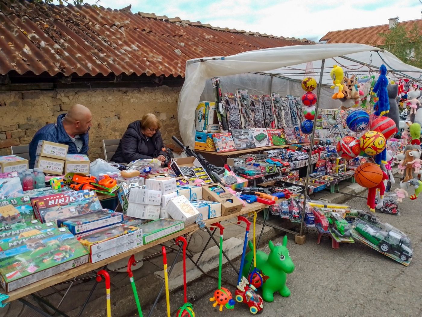 По традиция празникът доведе в Яхиново и търговците. Още сутринта улицата, водеща към храма, бе превзета от сергии.Продавачи от цяла Югозападна България предлагаха какво ли не – пуканки, захарен памук, детски играчки, дрехи и обувки за деца и възрастни, спално бельо.Кюстендилец бе докарал клетки с няколко екзотични папапагала, най –интересната от които 18-годишен Ара. “Папагалът е тук, за да се снимат децата с него. Снимането струва 20 лева“, каза търговецът.