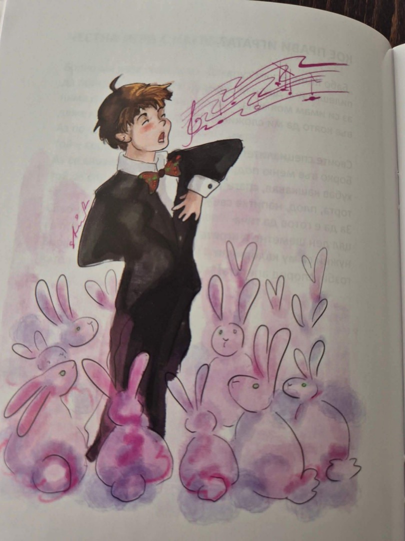 Илюстрациите са наистина прекрасни и главният герой ги разглежда и коментира с любов. Моя любима е към стихотворението "Какво е домът?", в която той пее, облечен във фрак.