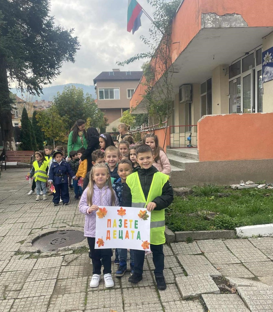 Възпитаниците на ДГ ”Еделвайс” трогнаха водачи на автомобили, като им подариха своите послания върху есенни листа, изработени от тях и педагозите им. Пожелаха на всички безаварийно пътуване и безопасно поведение на улицата.