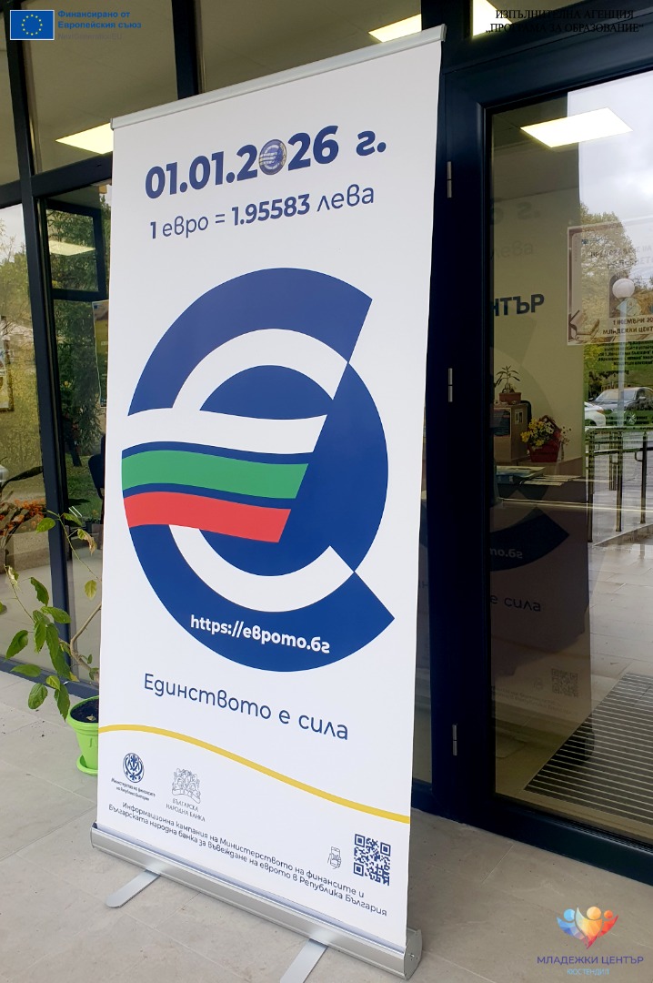 Той обърна внимание и на инициативата на учениците от Професионалната гимназия по икономика и мениджмънт в града, които са изработили информационни брошури и постери, насочени към най-уязвимата част от обществото – възрастните хора. Младите ще посещават читалища и пенсионерски клубове, за да ги информират и предпазят от измами, свързани с въвеждането на новата валута.