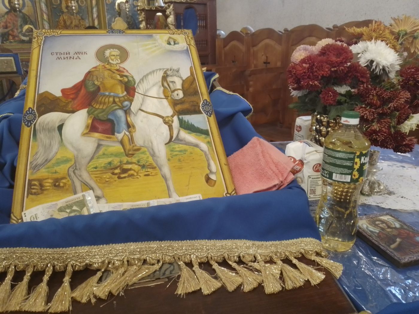 На централно място бе изнесена икона на светеца воин, за който се смята, че е чудотворец, покровител на семейството, дома и пътуващите. Имаше и празнична литургия, отслужена от отец Васил Георгиев.
