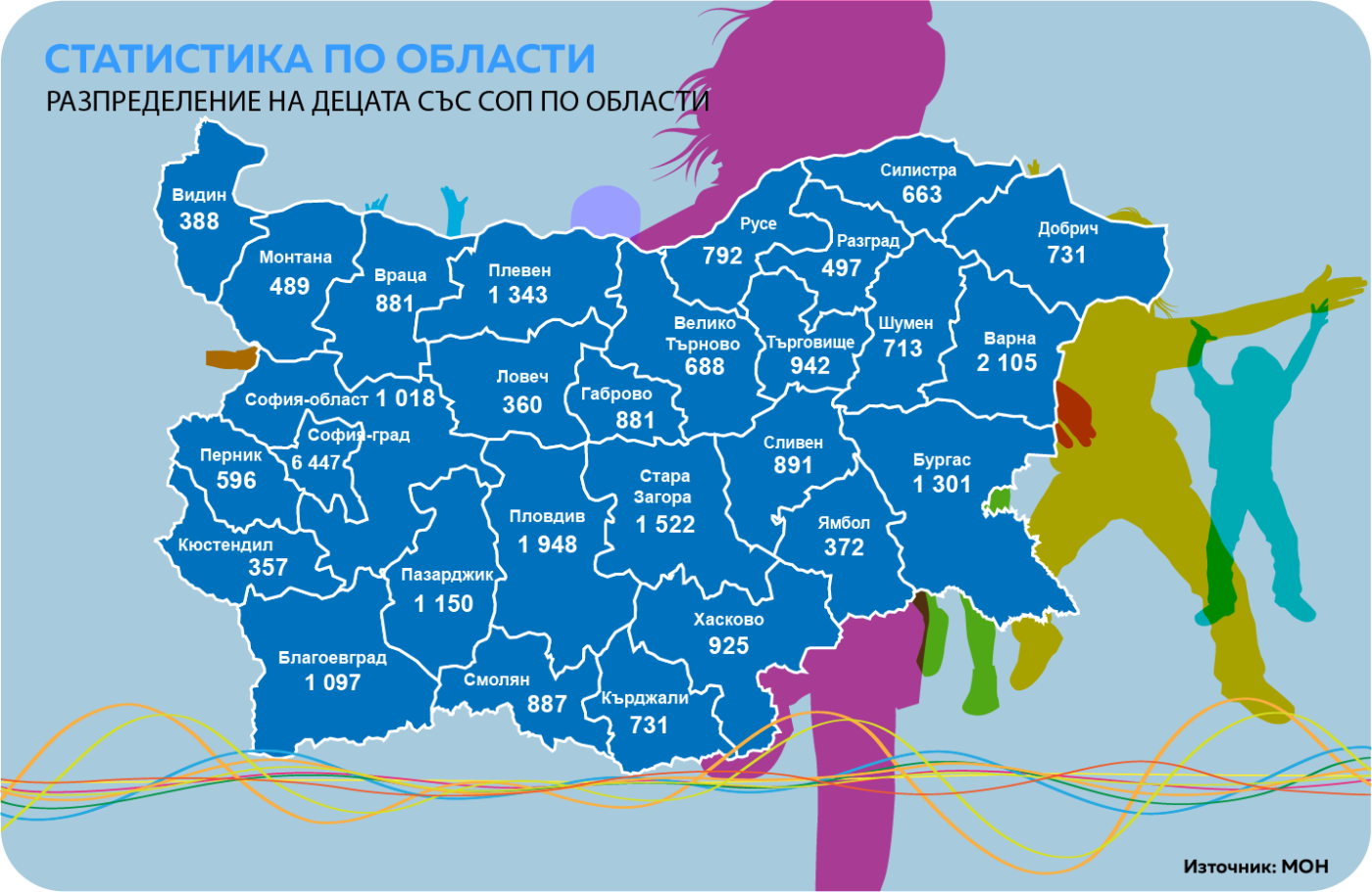 Според Министерството на образованието през тази учебна година броят на децата и учениците със специални образователни потребности е общо 29936, което е 3,25% от всички деца и ученици у нас.