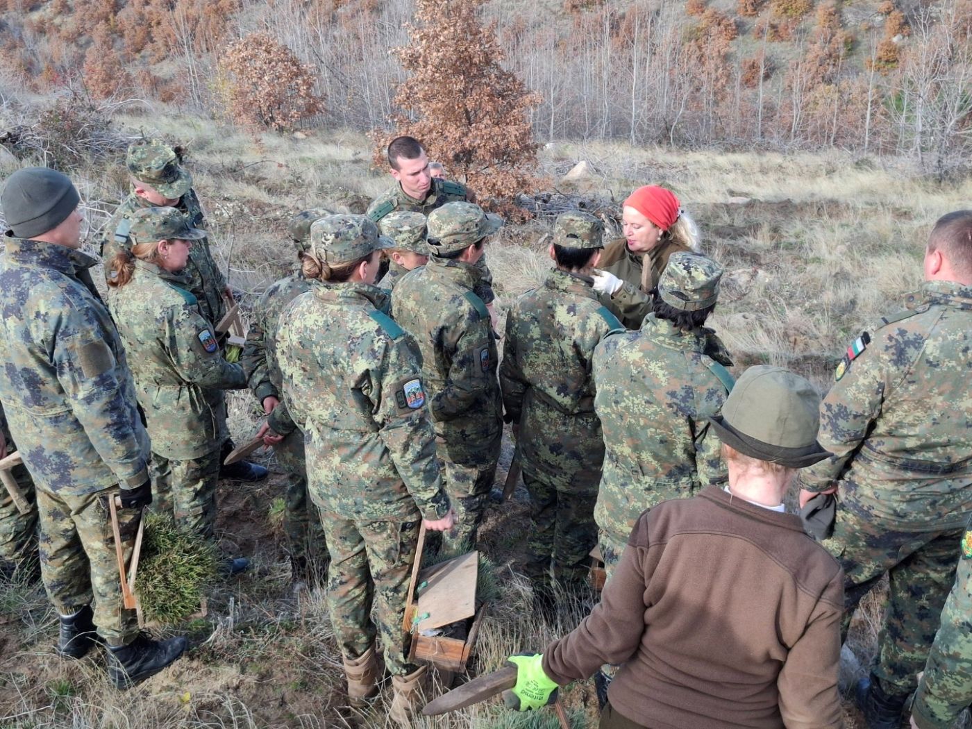 Усилията им продължават и днес, този път рамо до рамо с военните от 3-то бригадно командване към Сухопътните войски. В кампанията, чийто старт беше даден преди седмици, когато горски и летци от ВВС залесиха край Самоков, се включиха около 50 военнослужещи, както и горски служители от ЮЗДП и териториалното му поделение в Симитли. Фиданките от космат и зимен дъб, както и черен бор ще се превърнат в нова гора на мястото на изпепелените дървета.