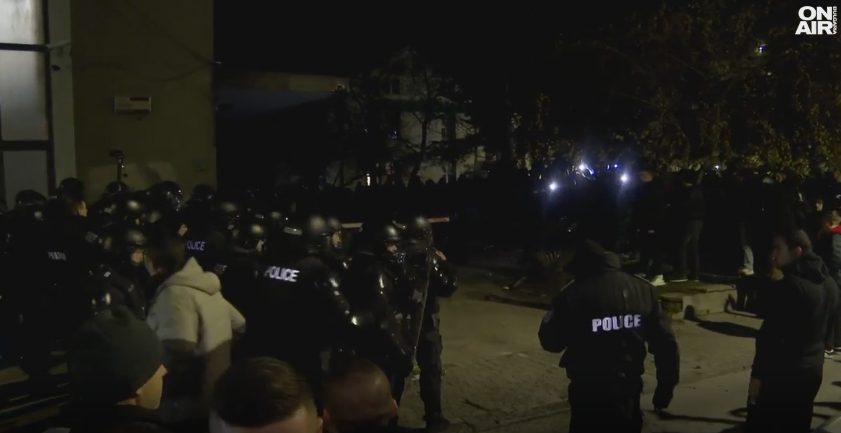 В този момент полицията вече се намеси и се стигна до насилие. С лютив спрей и палки униформените разпръснаха хората и оградиха сградата.