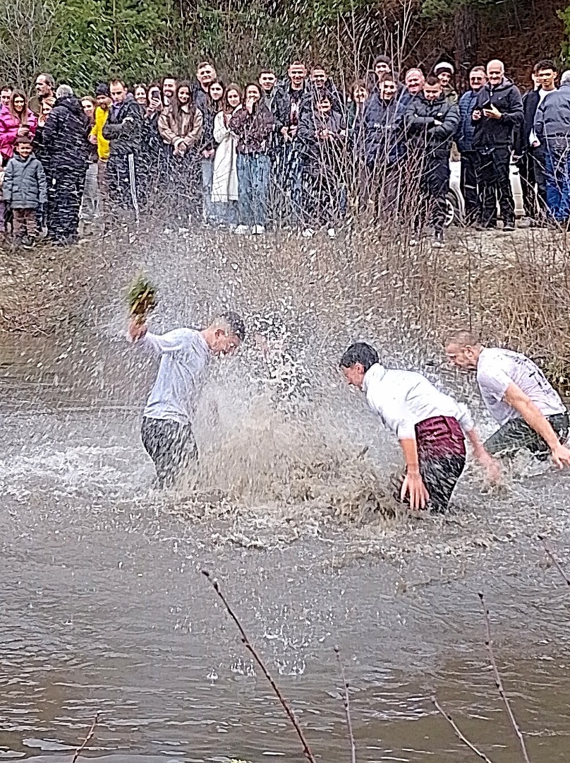 По традиция, завещана от бившия свещеник в храма “Св. вмчк Георги Победоносец“ отец Димитър Недялков, участниците в ритуала бяха облечени в осветени бели тениски - за благословение. И тази година Богоявление събра много хора край вира, които наблюдаваха “битката“ за разпятието.
