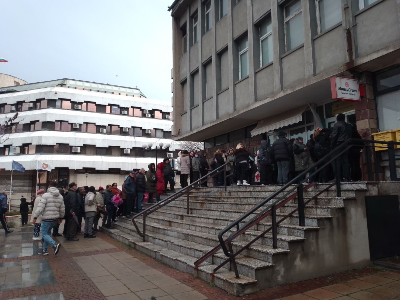 Хора от опашката, на която имаше над 30 души, негодуваха, че в пощенския клон работи само едно гише и това забавя.