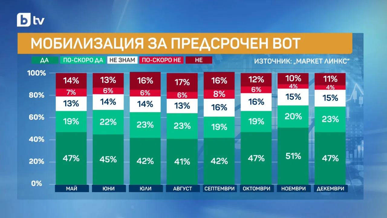 “Ключът е “не съм решил за кого да гласувам”. Това са хора, които ще гласуват, но не знаят все още за кого“, обърна внимание социологът.