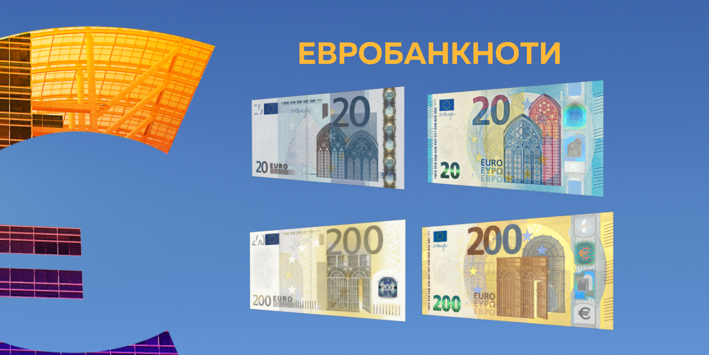 При по-едрите купюри – от 200 евро, например, има и други елементи като холограмата и прозрачния прозорец. На новата банкнота от 200 евро са добавени микрoнадписи около номинала и допълнителни защитни символи.
