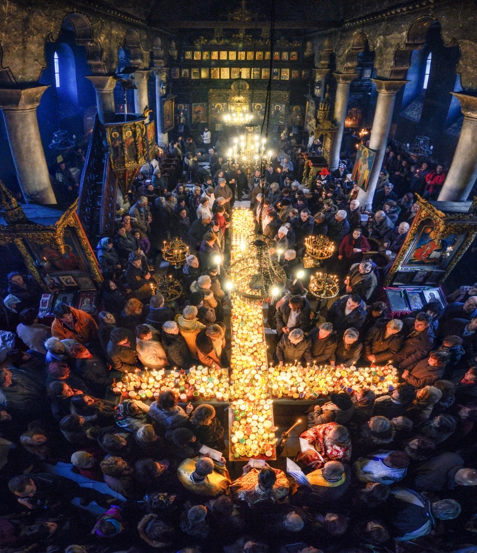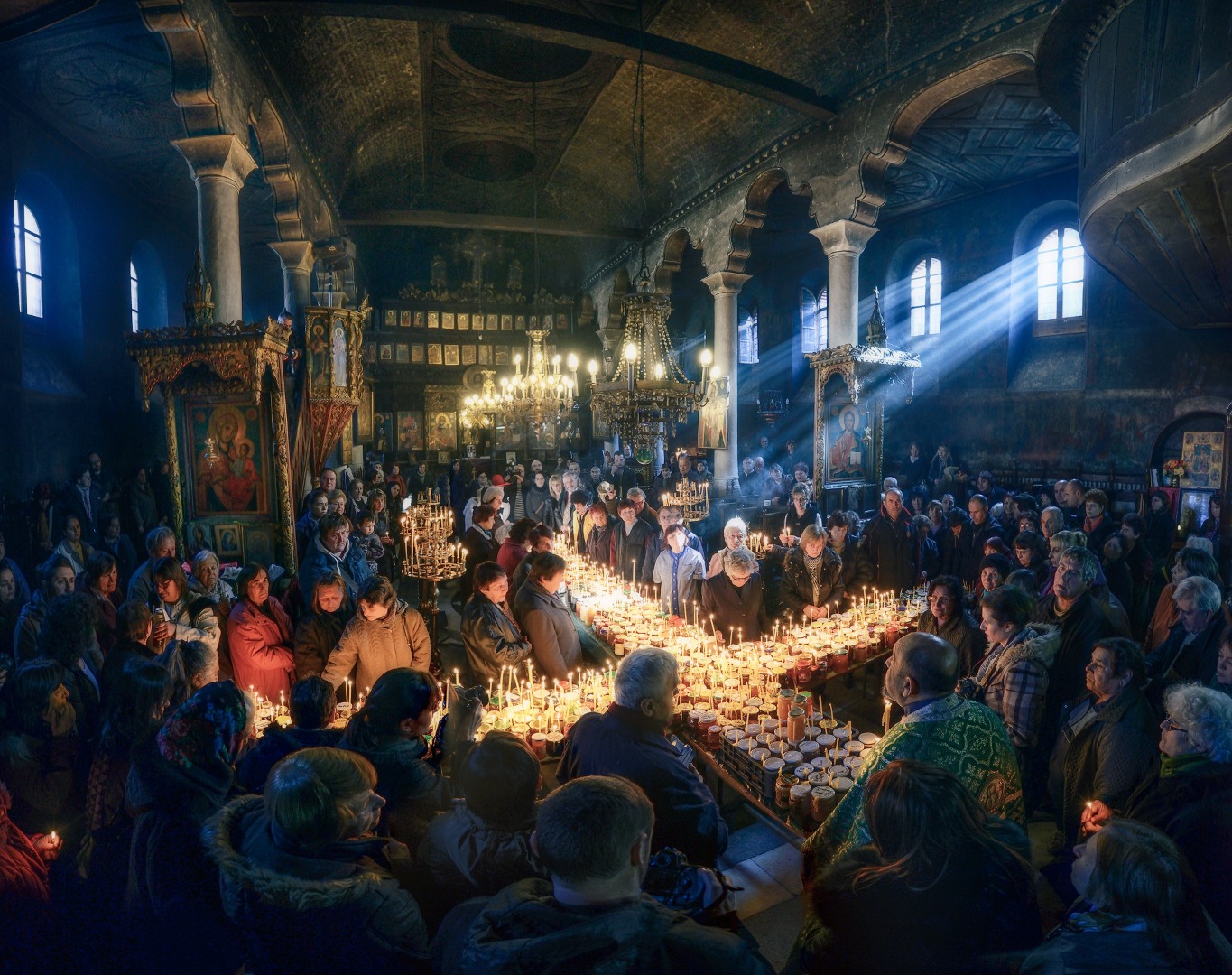 Масите, застлани с чисти бели покривки, бяха разположени по цялото протежение на храма, а върху всеки буркан пчеларите внимателно прикрепиха и запалиха свещ. Отвисоко гледката на хилядите пламъци върху кехлибарения продукт превърна трикорабната псевдобазилика в истински океан от светлина.