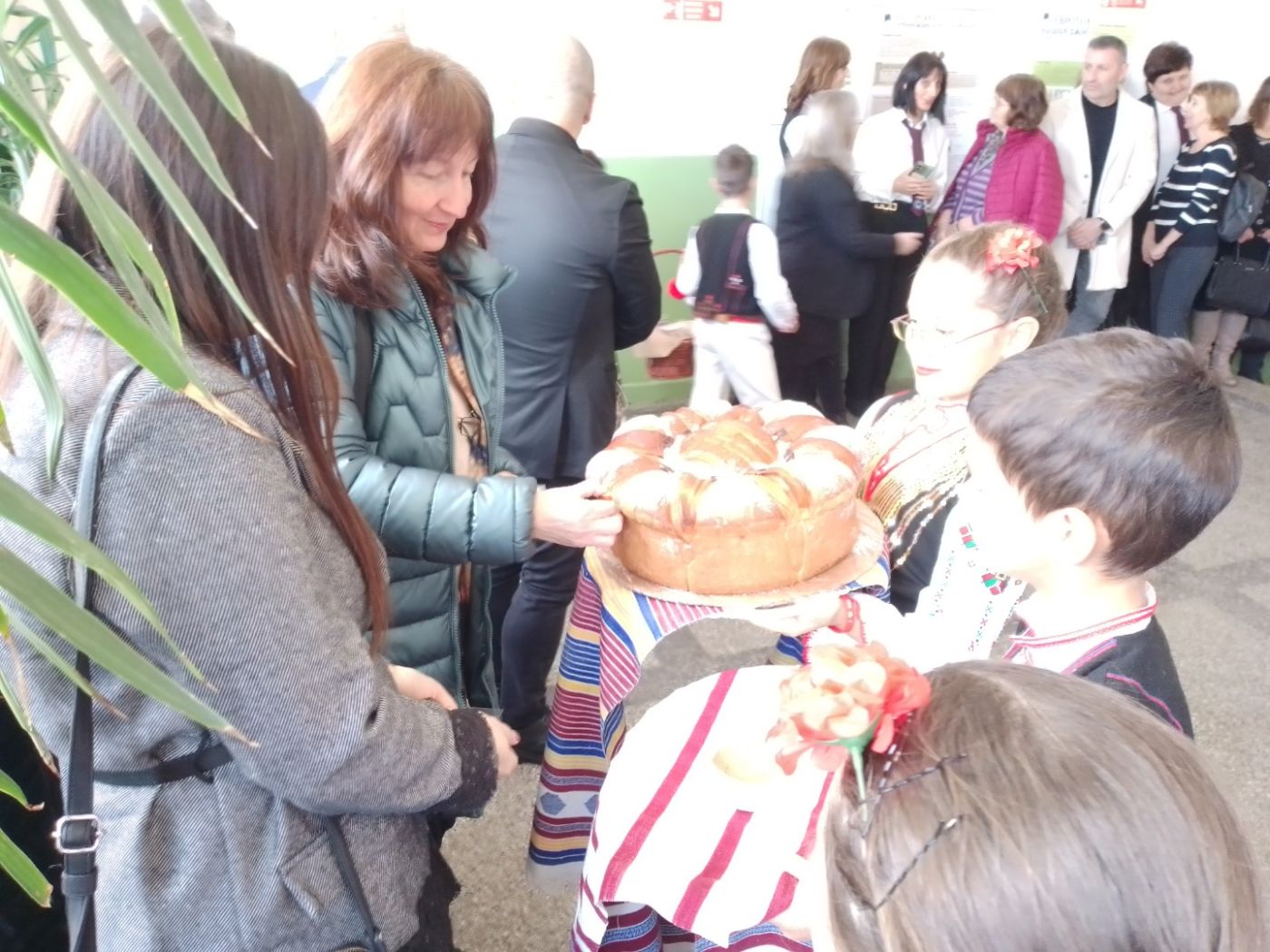 Гостите бяха посрещнати с питка и мед, поднесени от ученички, облечени в народни носии. Церемонията включваше програма с изпълнения на училищния клуба по танци с ръководител Воин Войнов и вокалната формация “Рила войс“, ръководена от Яна Чинова.