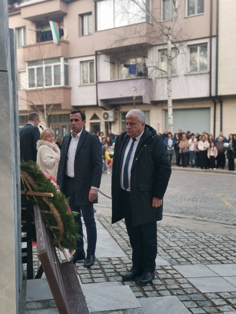 Веднага след това се състоя церемония по полагане на венци и цветя пред паметника на загиналите във войните в града.