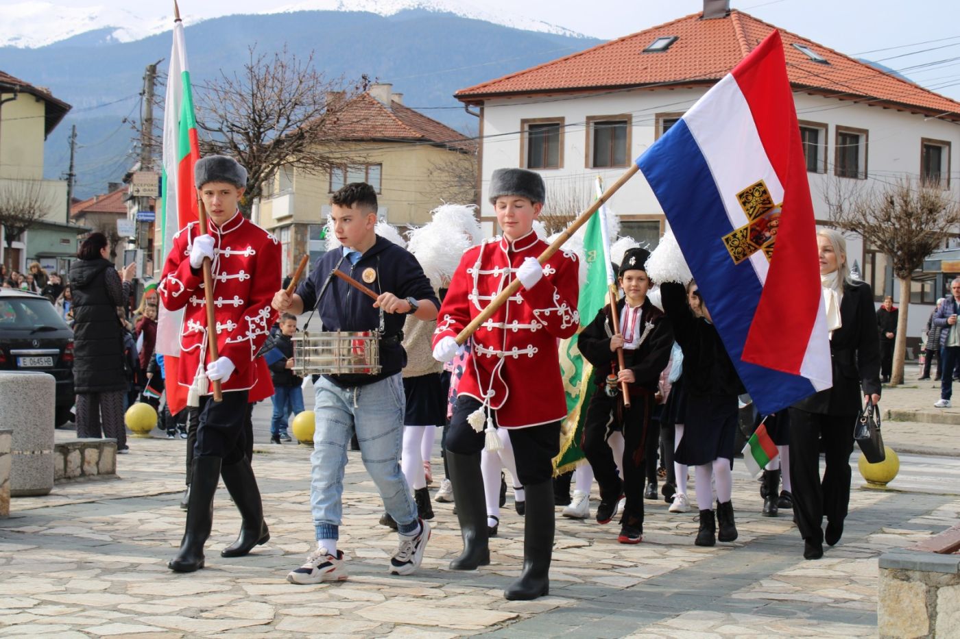 С впечатляващо спускане на националния флаг по пистите под връх Тодорка, Банско посрещна 148-ата годишнина от Освобождението на България. Хиляди жители и туристи се събраха на Бъндеришка поляна, където скиори от училище “Юлен“ развяха огромния трибагреник над белите писти.