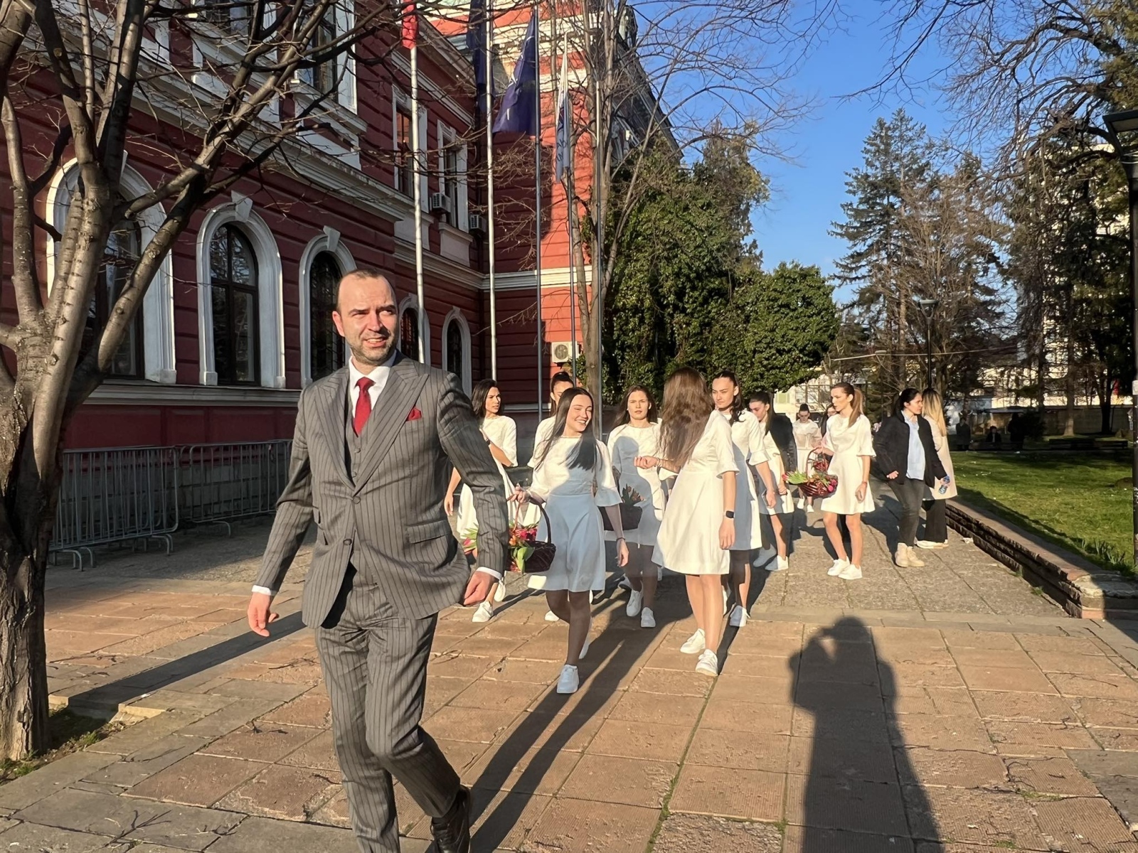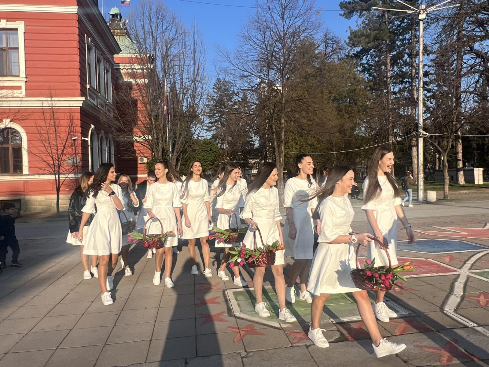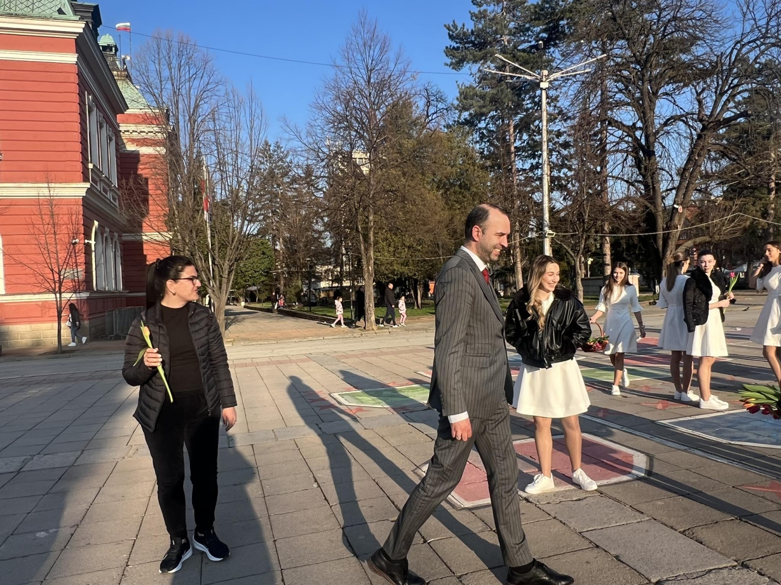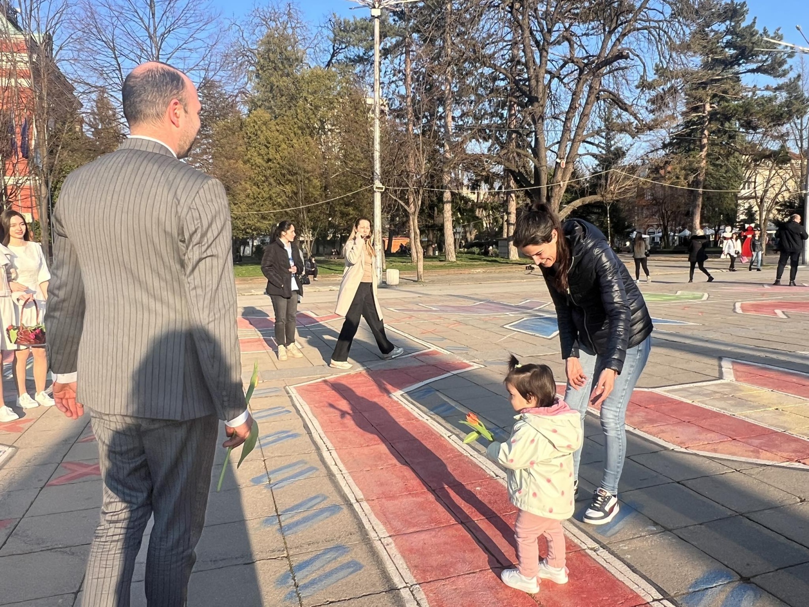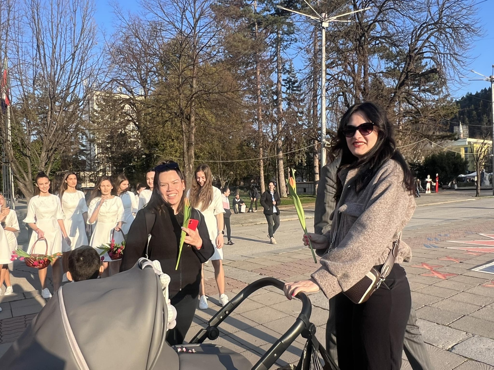 С усмивки и внимание младите момичета раздаваха цветя на жените на площада, създавайки празнично настроение в сърцето на града. Нежни като пролетни лалета, девойките внесоха много топлина и настроение сред минувачите.