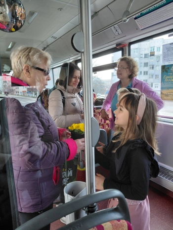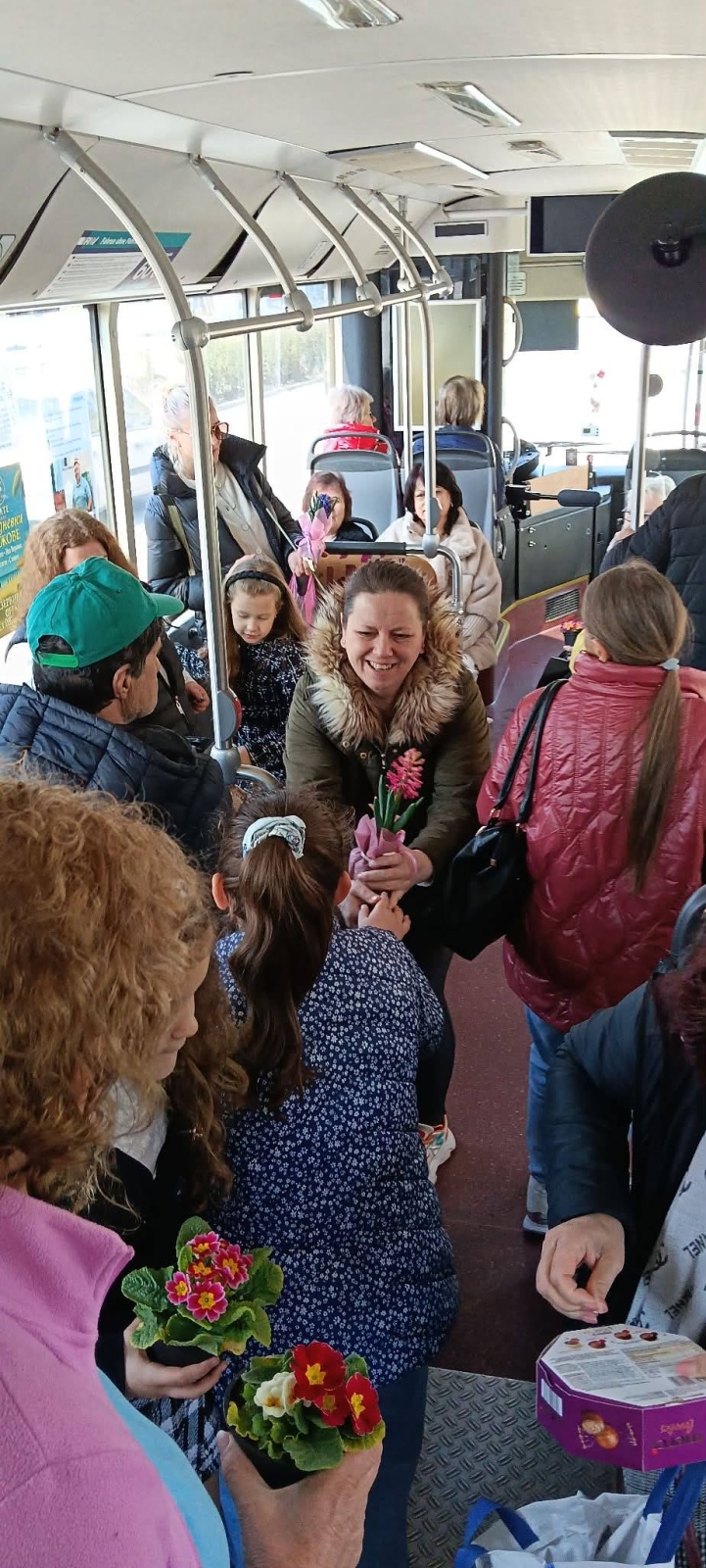 В инициативата се включиха момичета от клуб “Родолюбие“. Те започнаха своята мисия от квартал “Еленово“, при първата спирка на градския транспорт по линия №2, след което продължиха по целия маршрут. Часове наред те подаряваха цветя, осигурени от читалището.