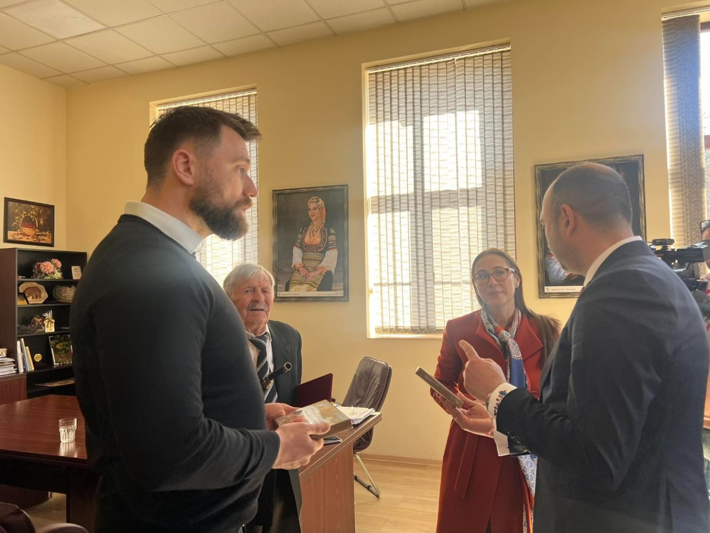 Легендарният кюстендилски майстор кошничар Димчо Занев, известен като бай Димата, заедно с режисьора на документалния филм Андрей Граховски, гостуваха на кмета на община Кюстендил инж.Огнян Атанасов.