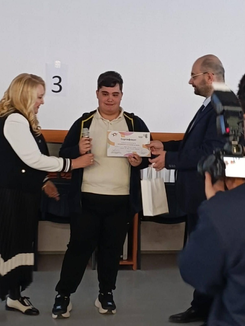 За своето постижение Кирил получи грамота и награди, връчени лично от доц. Джеймс Йоловски от името на Асоциацията на банките в България и проф. Даниела Фесчиян от Асоциацията на икономическите училища в България“, съобщават от ПГОСУ "Св.Иван Рилски".