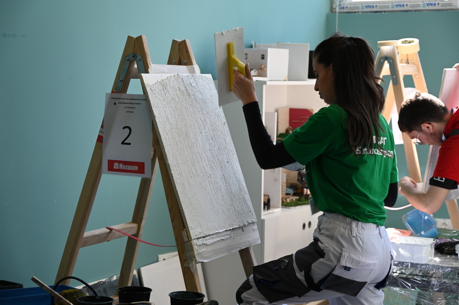 Състезанието се проведе в четири основни дисциплини, които обхващат ключови направления в строителството. В категорията “Мазилки, шпакловки и бояджийски работи“ първото място беше спечелено от Ася Михайлова от Професионалната гимназия по техника и строителство “Арх. Йордан Миланов“ – Перник. Второто място зае Калина Ваклинова от Професионалната гимназия по архитектура, строителство и геодезия “Арх. Камен Петков“, а третото място беше за Андреа Петрова от Професионалната гимназия по строителство, архитектура и геодезия “Васил Левски“.