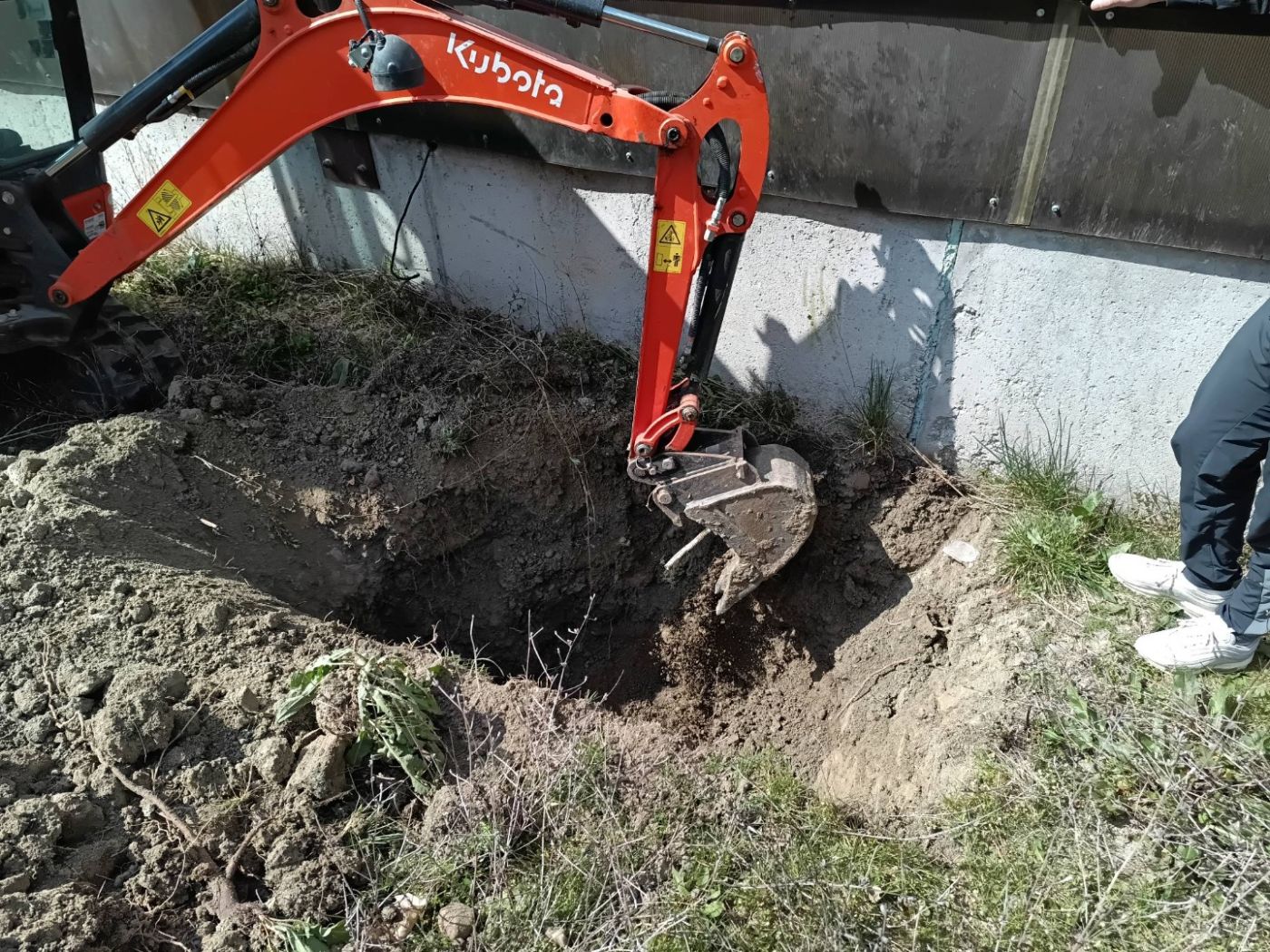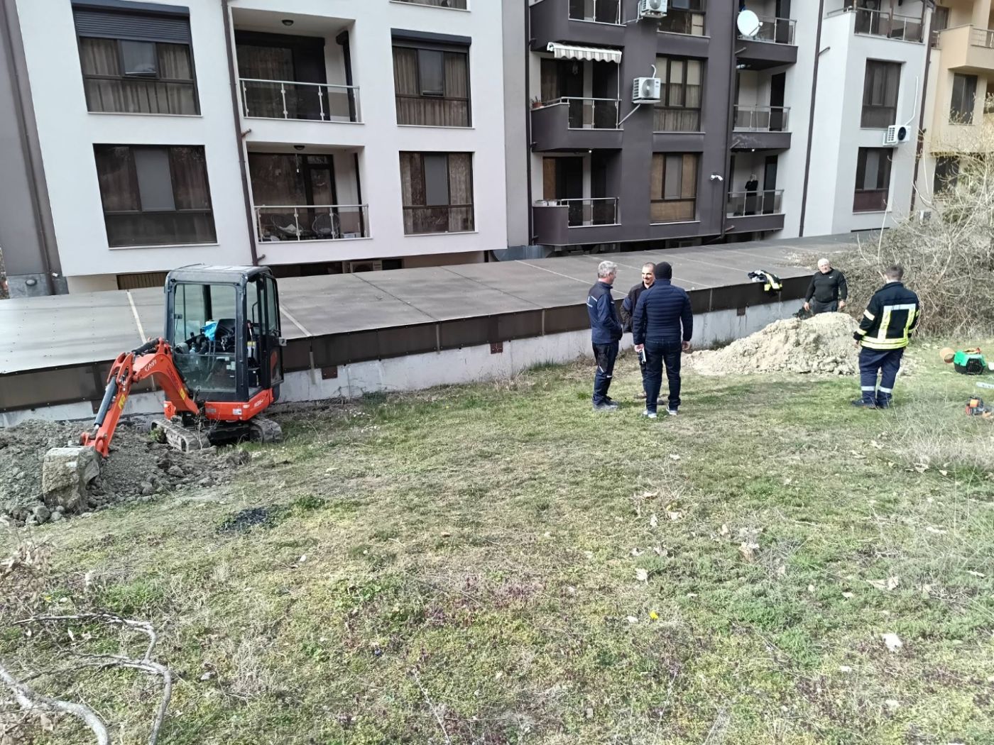 На място веднага се отзовал ръководителят на отряда Владимир Филков, който установил, че ситуацията е критична. Първоначално той успял само да пусне храна на животното, но станало ясно, че без сериозно копаене и къртене то няма как да излезе. Със съдействието на Община Благоевград в акцията се включил и багер, с чиято помощ спасителите си проправили път през бетона и пръстта.