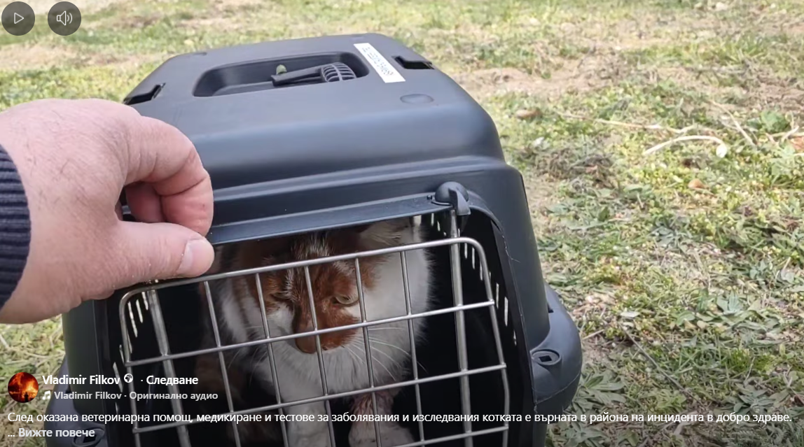 Оказало се, че “беглецът“ е голяма женска котка, най-вероятно дворна. По думите на Филков тя е била изненадващо кротка и гальовна въпреки преживения стрес. След като медиците потвърдили, че е в добро здраве, котката е върната в района на инцидента.