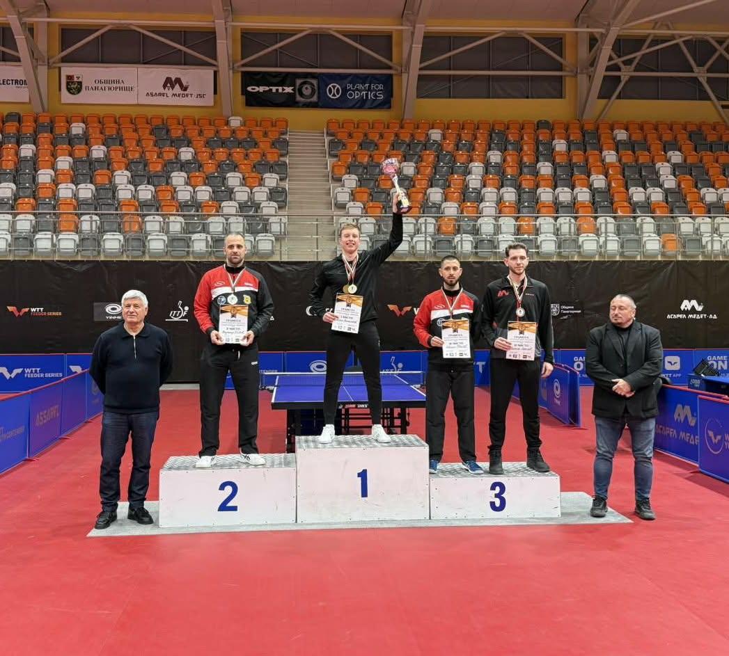 Успехите за клуба не спряха дотук. В дисциплината двойки мъже Йоан Величков, заедно със своя съотборник Стефан Димитров, също спечелиха златните медали, демонстрирайки отличен синхрон и силна игра. Финалът при двойките се превърна в изцяло вътрешноклубен сблъсък, като Величков и Димитров се изправиха срещу своите съотборници Христо Христев и Радослав Котев. Този факт е достатъчно красноречиво доказателство за силата и дълбочината в състава на дупнишкия клуб.