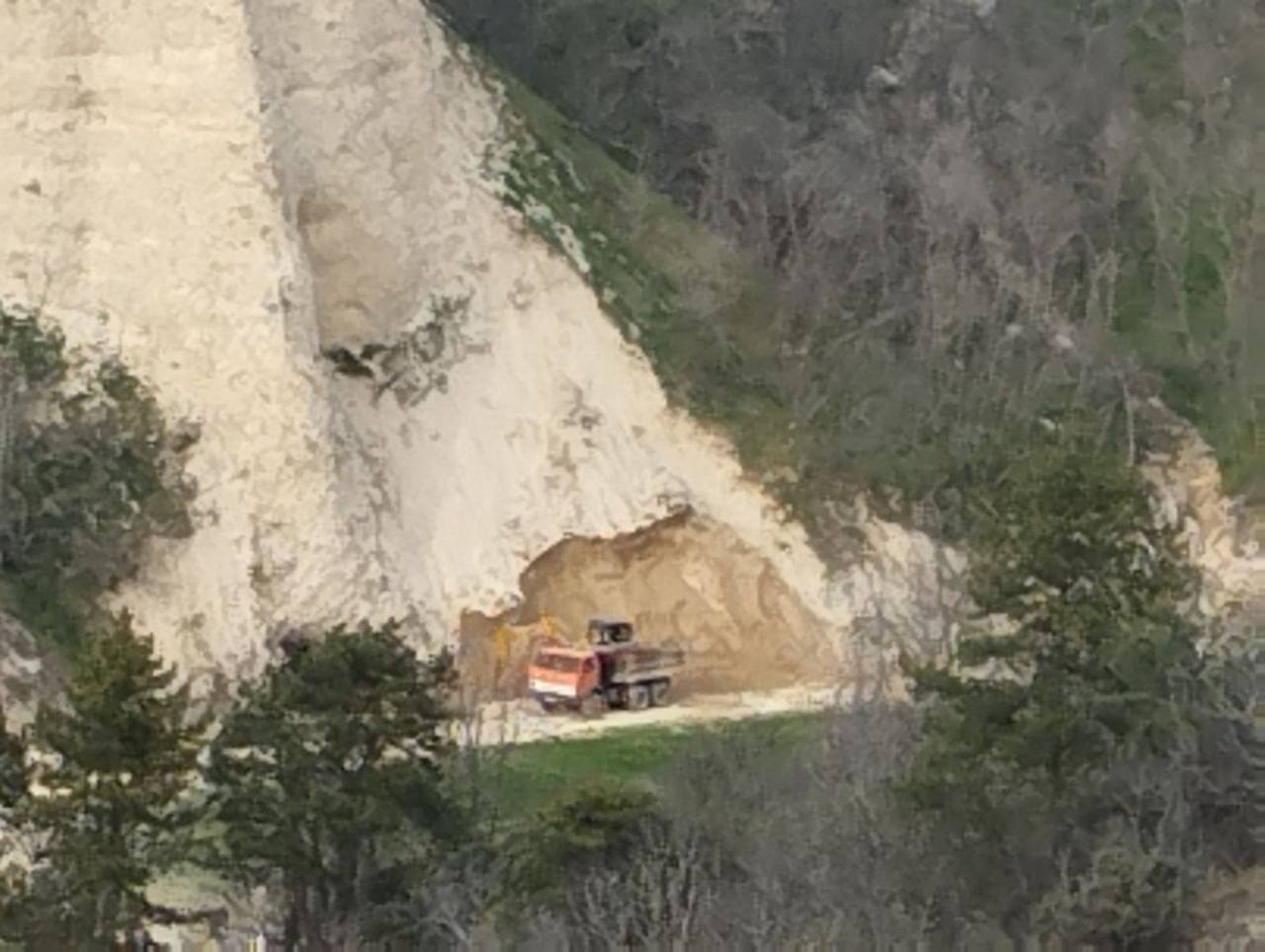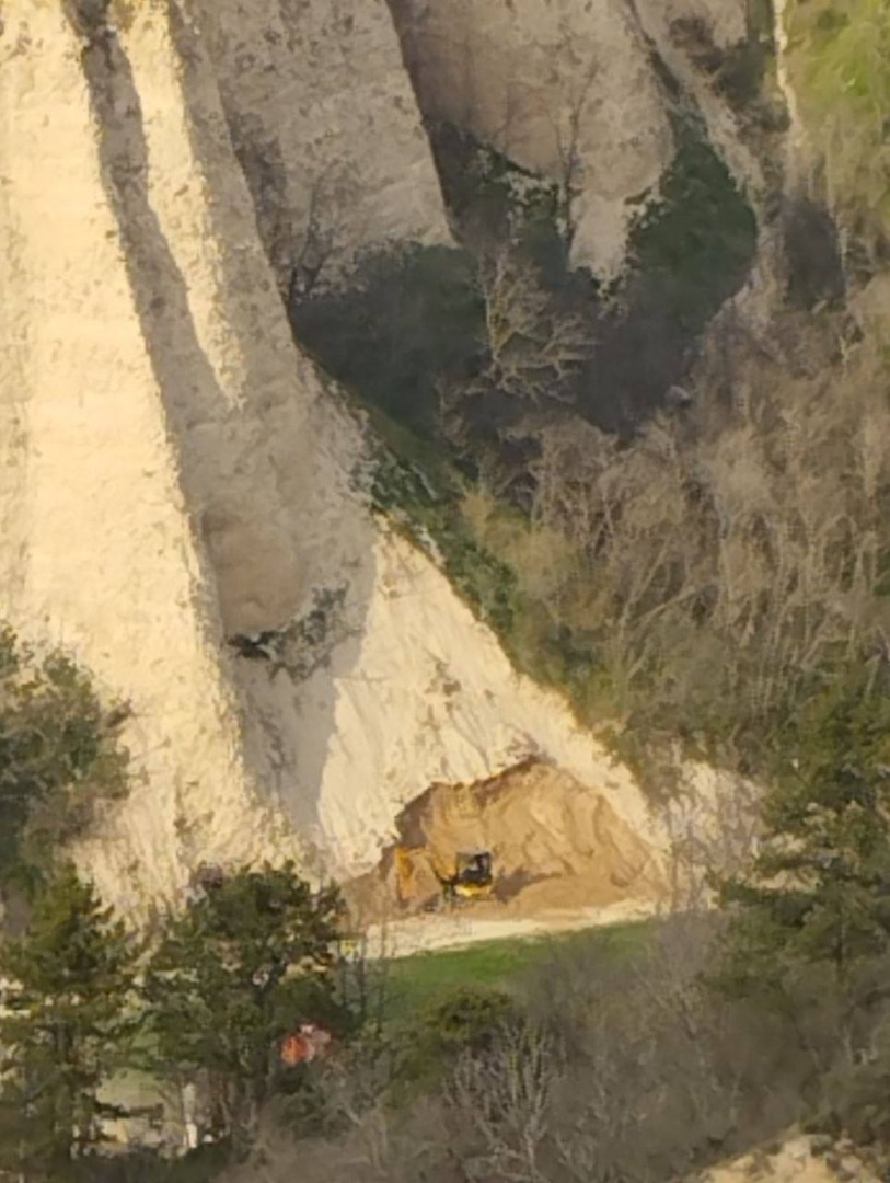Възмутени от посегателствата върху природния феномен, те разпространиха в социалните мрежи снимки, на които се вижда частично разрушаване от багер, който работел на място.