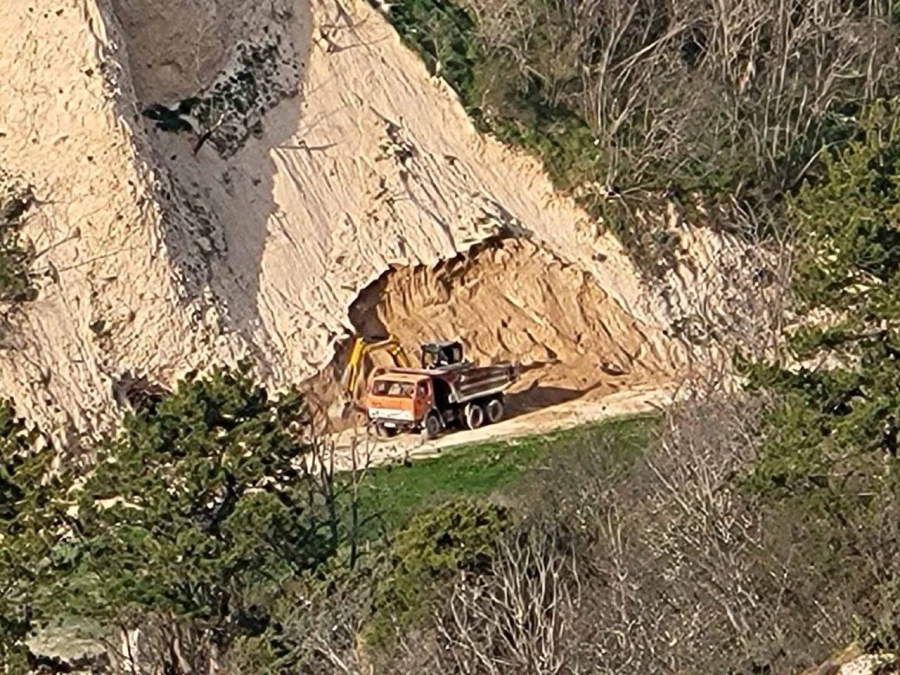 Туристи алармират в социалните мрежи за разрушаване на основите на пясъчните пирамиди в Мелник, които са защитени от закона като природен феномен. На мястото са заснети багер, който копае, и камион за извозване на земна маса.